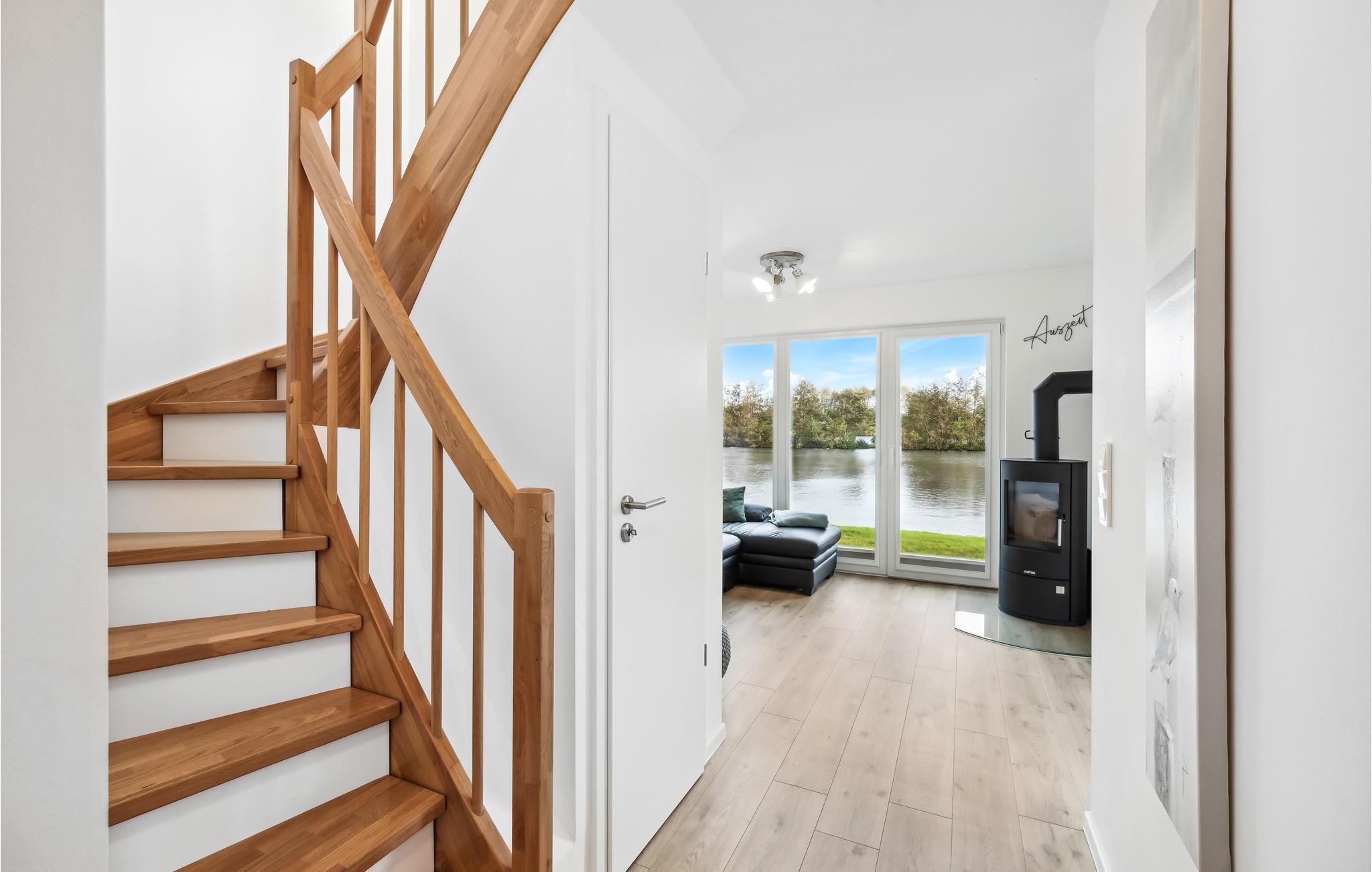 Vom Erdgeschoss gelangen Sie über eine geschwungene Treppe in das Obergeschoss des Doppelhauses, wo zwei geräumige Schlafzimmer auf Sie warten. Hier können Sie die schöne Nordseeluft von einem Balkon genießen, welcher von beiden Räumen aus zugänglich ist. Hochwertige Möbel und eine gelungene Raumaufteilung machen dieses Ferienhaus zu einem traumhaften Urlaubsdomizil.