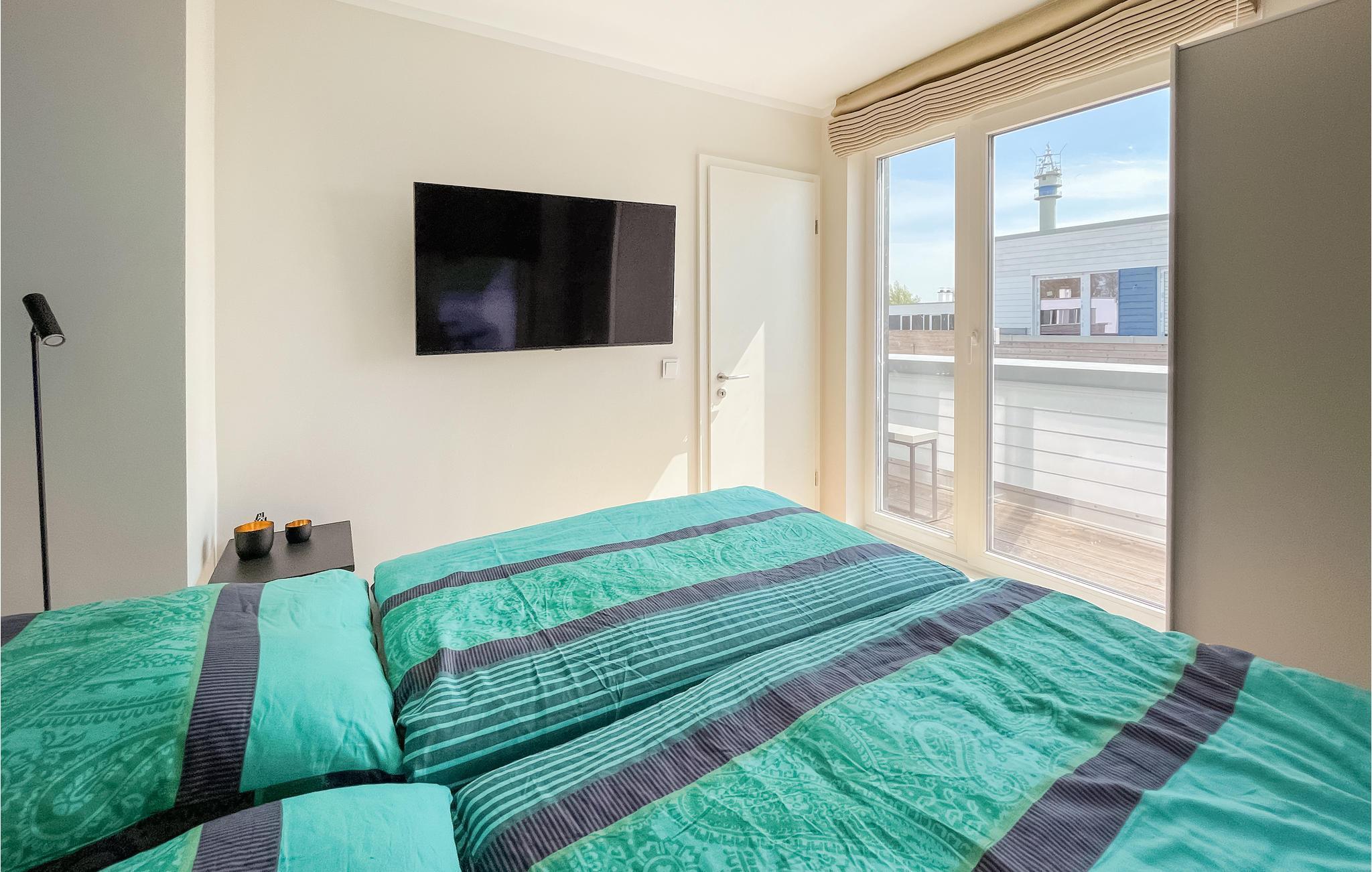Vom Erdgeschoss gelangt man über eine geschwungene Treppe in das Obergeschoss des Doppelhauses, wo zwei geräumige Schlafzimmer auf Sie warten. Hier können Sie die schöne Nordseeluft von einem umlaufenden Balkon genießen, welcher von beiden Schlafzimmern aus zugänglich ist. Hochwertige Möbel und eine gelungene Raumaufteilung machen dieses Ferienhaus zu einem traumhaften Urlaubsdomizil.