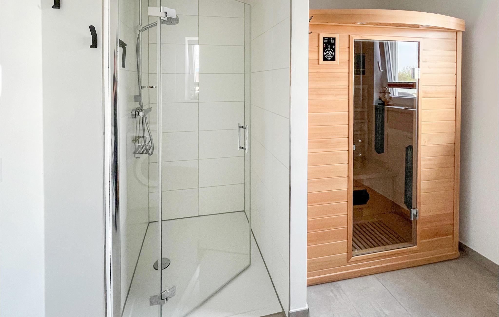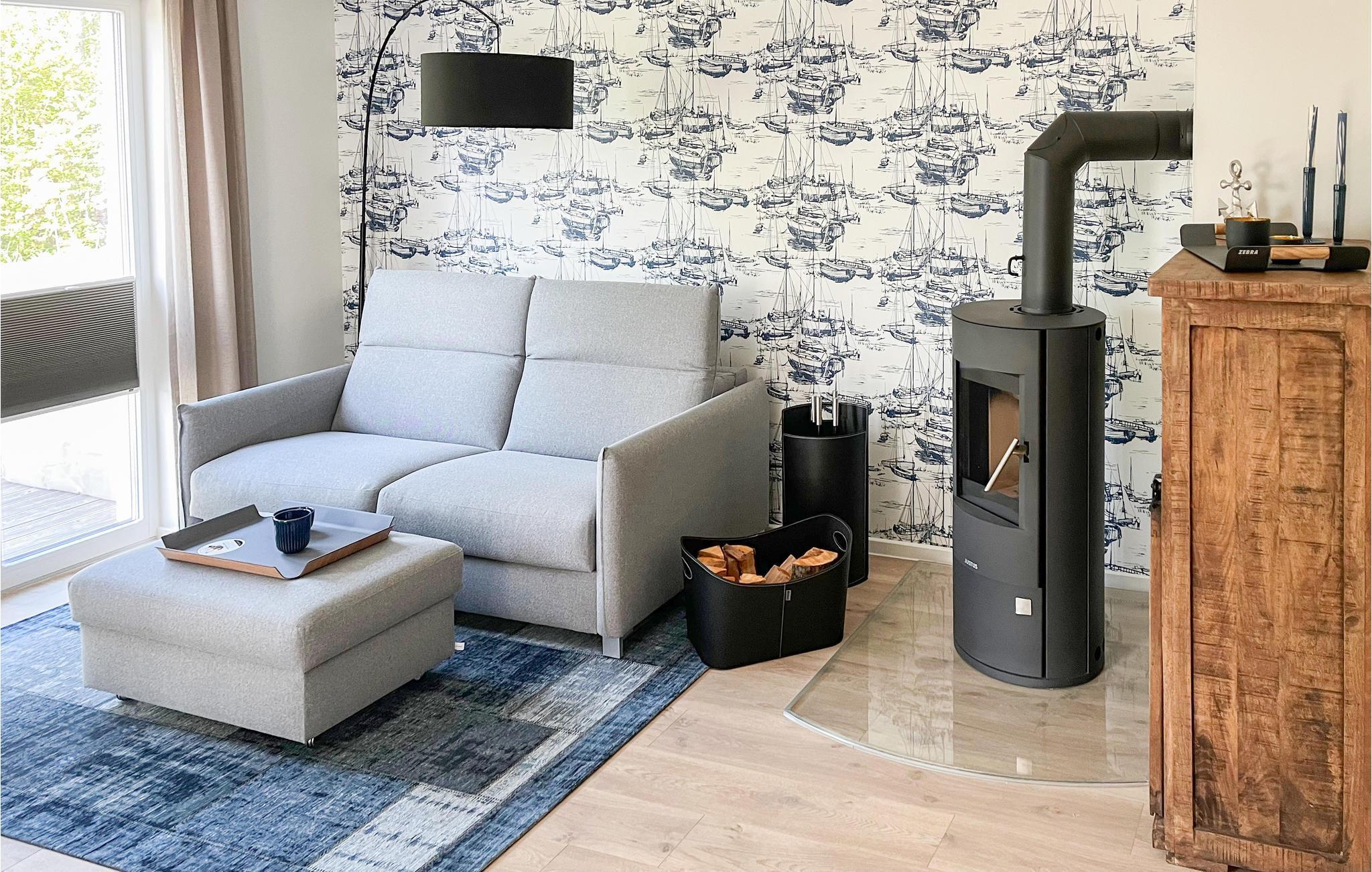 Ihr Haus erstreckt sich über 2 Etagen. Im Erdgeschoss befindet sich ein offener, gemütlicher Wohnbereich mit angrenzender Gartenterrasse und einer modernen Einbauküche, welche durch bodentiefe Fenster zum Verweilen einlädt. An kalten Tagen können Sie es sich vor dem eingebauten Kamin gemütlich machen. Neben dem Wohnbereich befindet sich ein helles Badezimmer mit Duschkabine und Infrarotsauna.