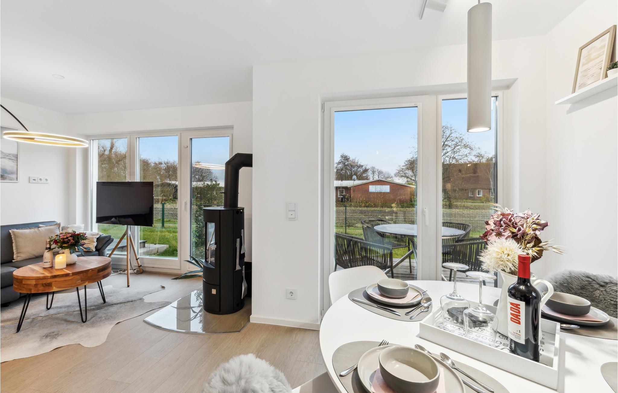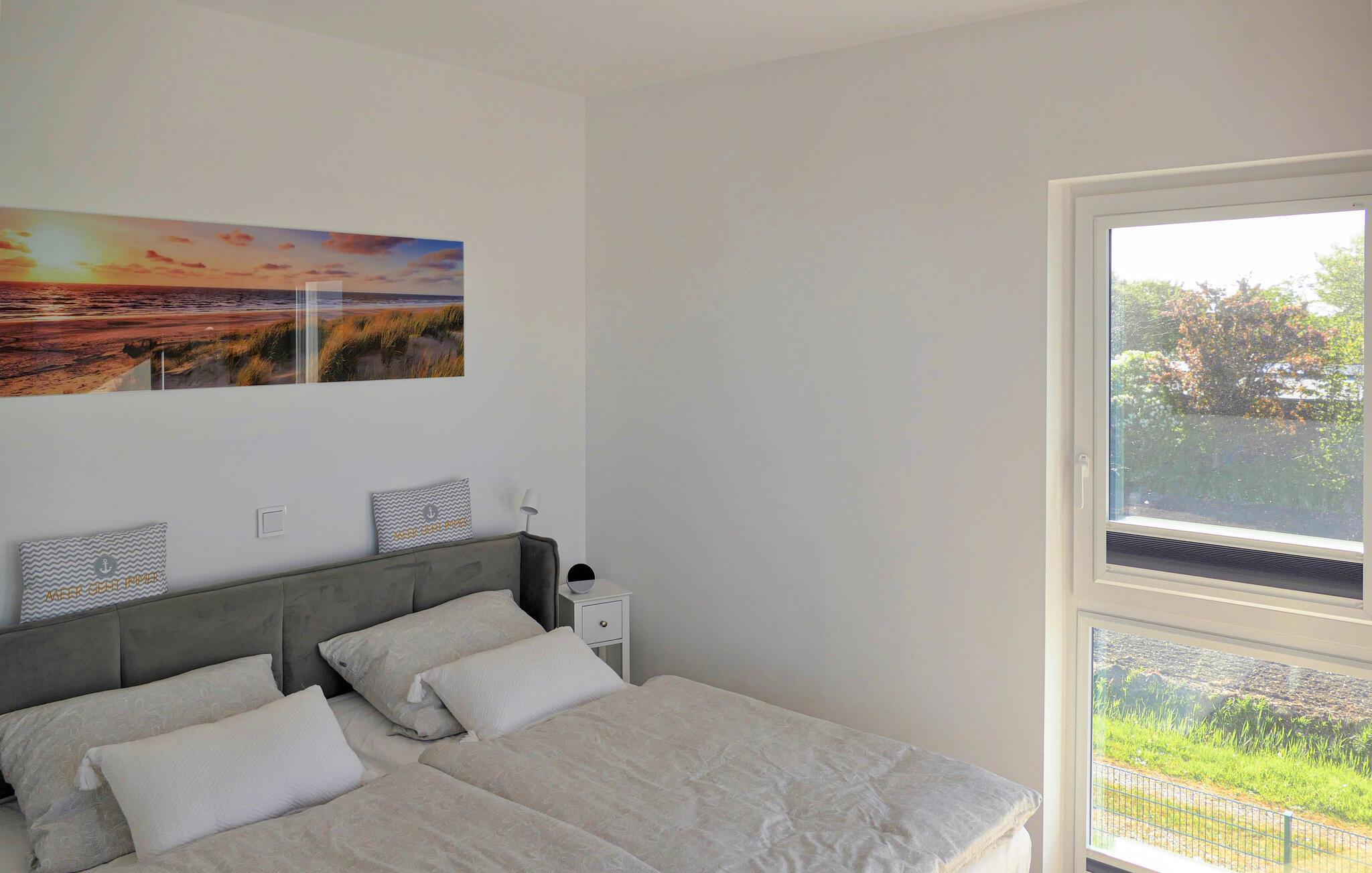 Modernes Doppelhaus Heimdall im NordseeResort Tossens mit Kamin, Sauna und Balkon, ideal für entspannte Ferien an der Nordsee.
