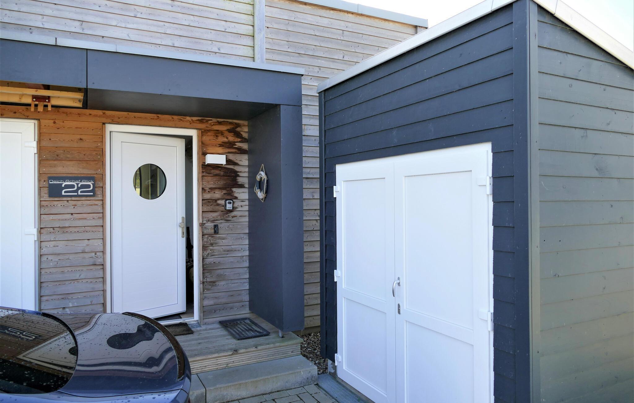 Dieses Haus erstreckt sich über zwei Etagen. Im Erdgeschoss befindet sich ein offener, gemütlicher Wohnbereich mit angrenzender Gartenterrasse und einer modernen Einbauküche, welche durch bodentiefe Fenster zum Verweilen einlädt. An kalten Tagen können Sie es sich vor dem eingebauten Kamin gemütlich machen. Ein Duschbad und ein Schlafzimmer säumen den Flur zu beiden Seiten und eine seitlich hinter dem Bad angelegte Treppe führt in das Obergeschoss. Hier befindet sich ein Schlafzimmer und ein Badezimmer mit Duschkabine und Infrarotsauna, die zum Entspannen einladen. Hier können Sie die schöne Nordseeluft von einem Balkon genießen, welcher von beiden Räumen aus zugänglich ist. Hochwertige Möbel und eine gelungene Raumaufteilung machen dieses Ferienhaus zu einem traumhaften Urlaubsdomizil.
