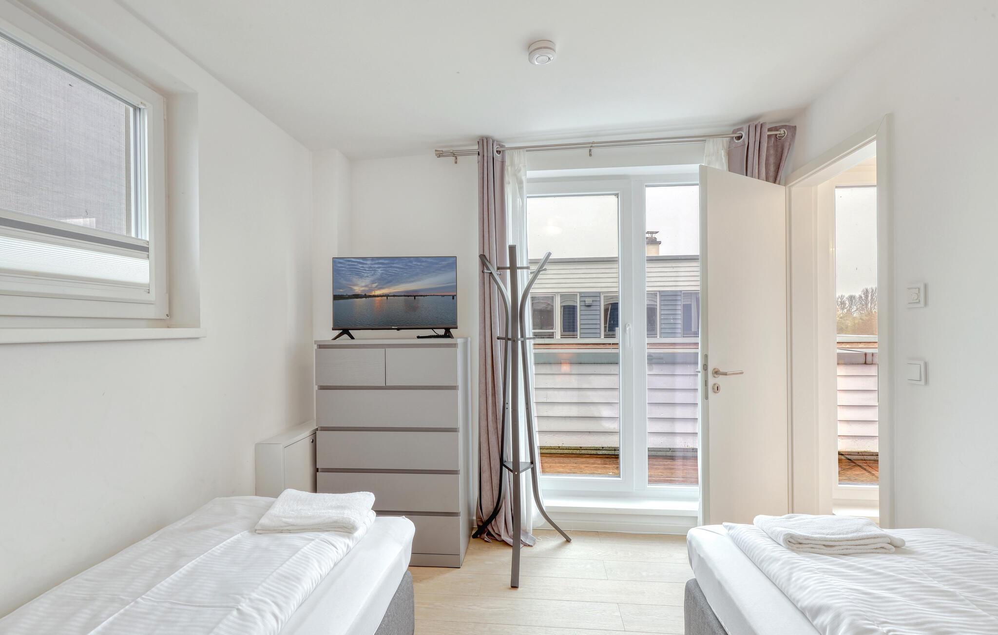 Treten Sie aus den Schlafzimmern auf den Balkon, um die Nordseeluft zu genießen. Servieren Sie die Mahlzeiten auf der Terrasse und lassen Sie den Blick über das Wasser schweifen.