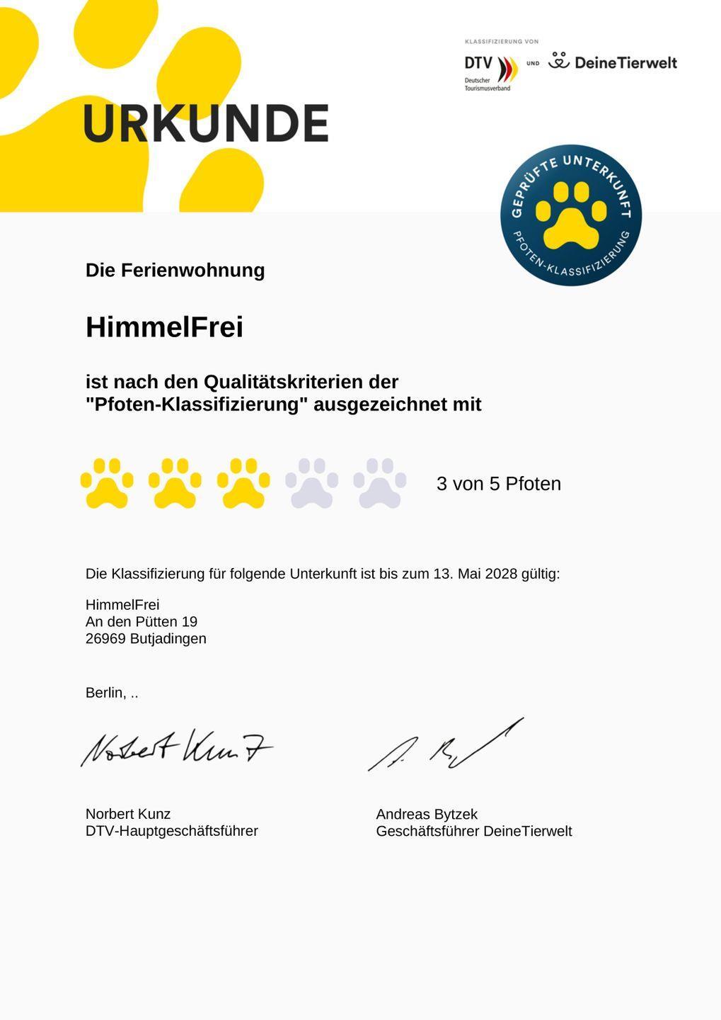 HimmelFrei im NordseeResort Tossens bietet dir auf 50 m² stilvolles Wohnen mit zwei Dachterrassen, privater Infrarotsauna und Wasserblick auf die Pütten. Genieße KomfortPlus Service mit bezogenen Betten, Handtüchern, offener Küche und Holzofen. Strand und Ortsmitte sind fußläufig erreichbar. Hunde sind willkommen.