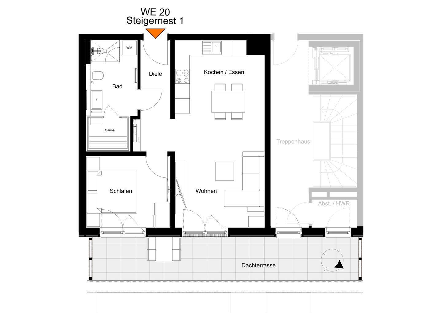 Steigernest 1– Penthouse-Feeling. Balkon. Modern. Ruhig.