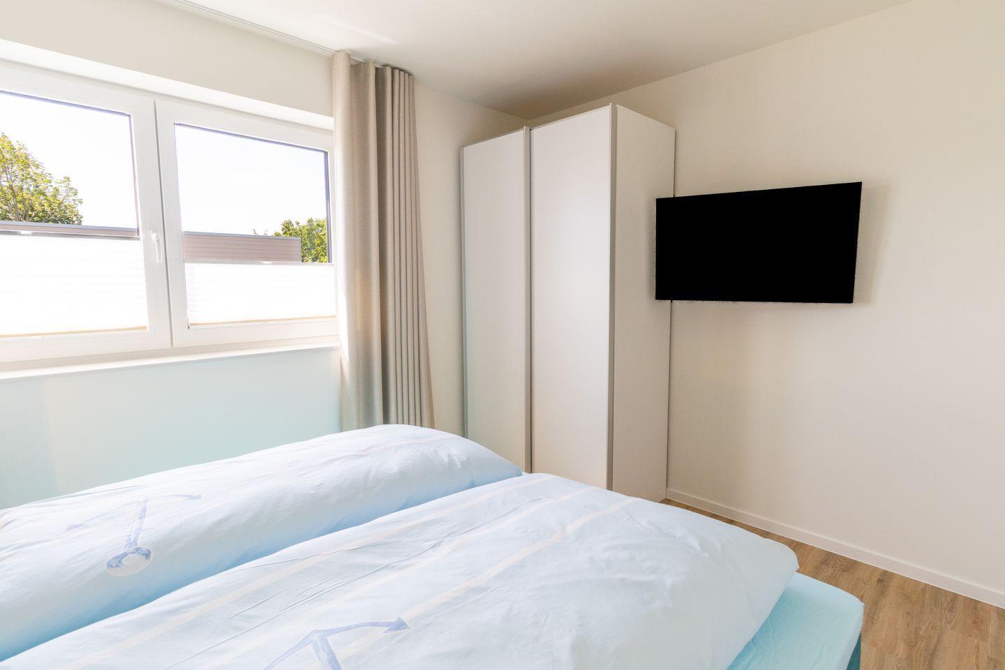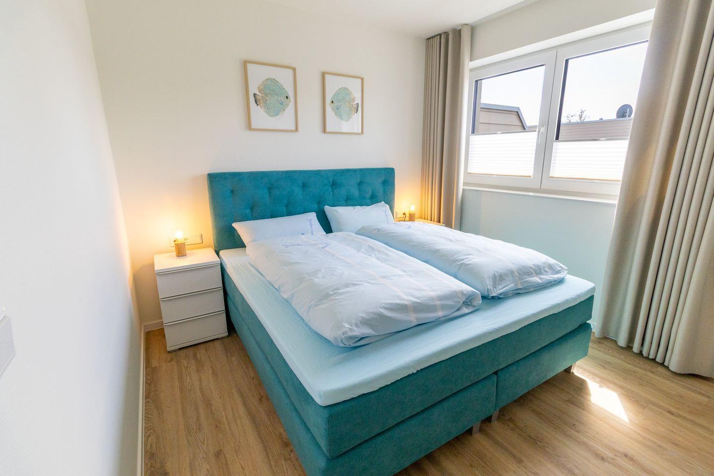 Zwei liebevoll eingerichtete Schlafzimmer laden zum Träumen ein – jeweils mit hochwertigen Boxspringbetten (180?x?200?cm), Smart-TV und Verdunkelungsvorhängen. Eines der Schlafzimmer bietet direkten Zugang zur Dachterrasse – ein besonderer Luxus für lange Sommerabende oder Frühstück mit Aussicht.