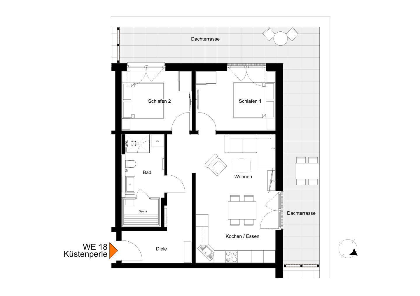 Küstenperle – Dachterrasse. Sauna. Strandnah.