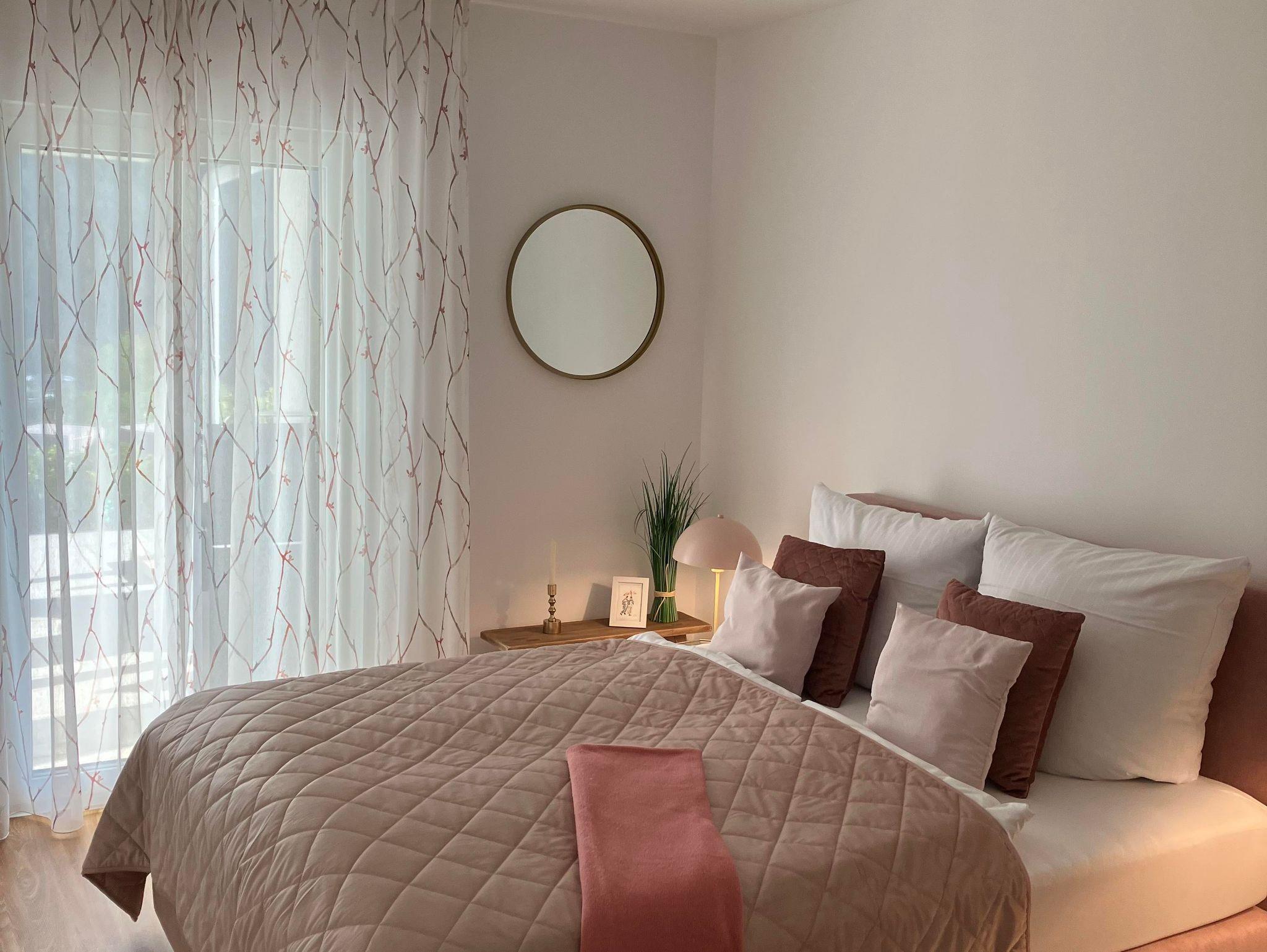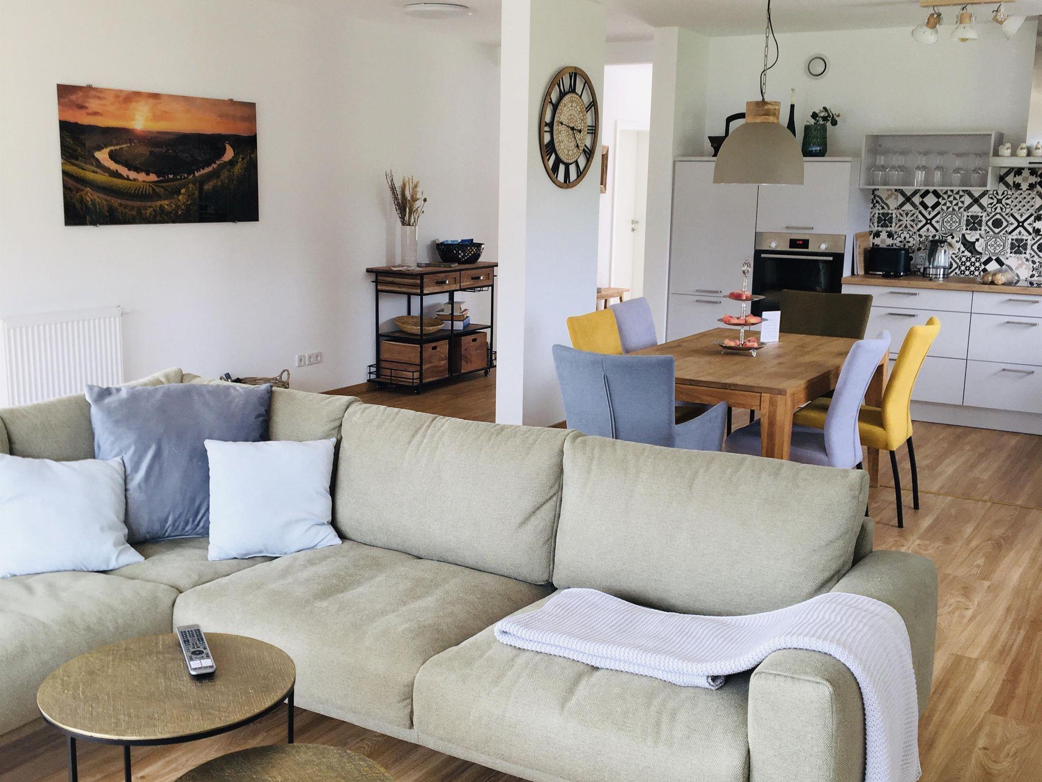 Drei liebevoll eingerichtete Doppel-Schlafzimmer mit gemütlichen Boxspringbetten sowie ein weiteres Zimmer mit Schlafcouch bieten die Möglichkeit zum Rückzug und zur Entspannung. Eine große Terrasse mit Sonnenliegen sowie hochwertigem Elektrogrill lädt ein zu einer Auszeit vom Alltag. Die erstklassig ausgestattete offene Wohnküche bietet alles für kulinarische Sternstunden mit der ganzen Familie oder im Freundeskreis. Der große Fernseher mit NETFLIX-Zugang sowie das kostenlose WLAN sorgen für Unterhaltung bei Groß und Klein. Auf Sie wartet ein komfortabler und barrierefreier Neubau in einer ruhigen und einzigartigen Wein-Kulturlandschaft. Ein modernes und hochwertiges Zuhause auf Zeit, das einlädt zu Lebensfreude und Entspannung. Genießen Sie die MOSEL-SONNE!