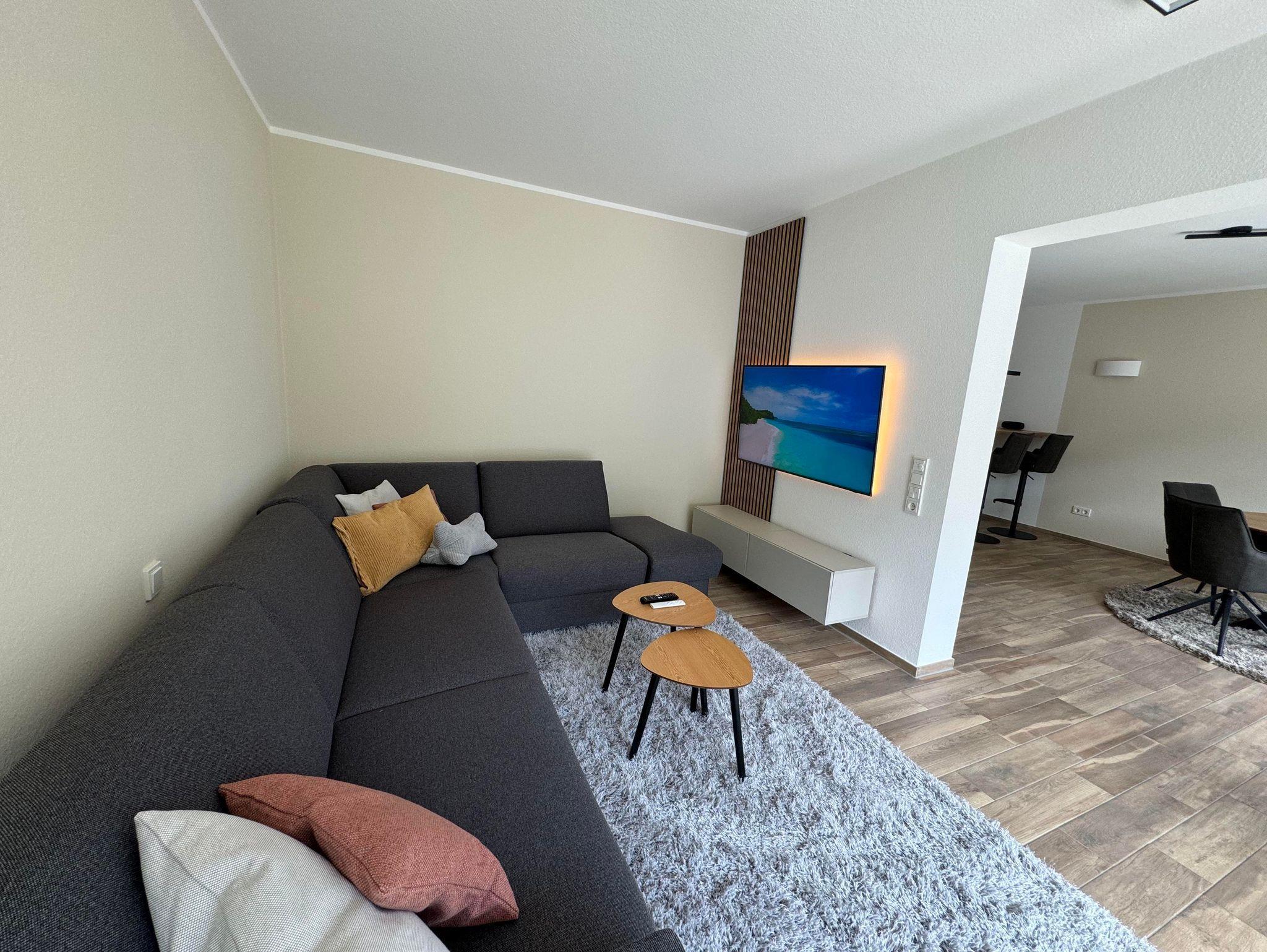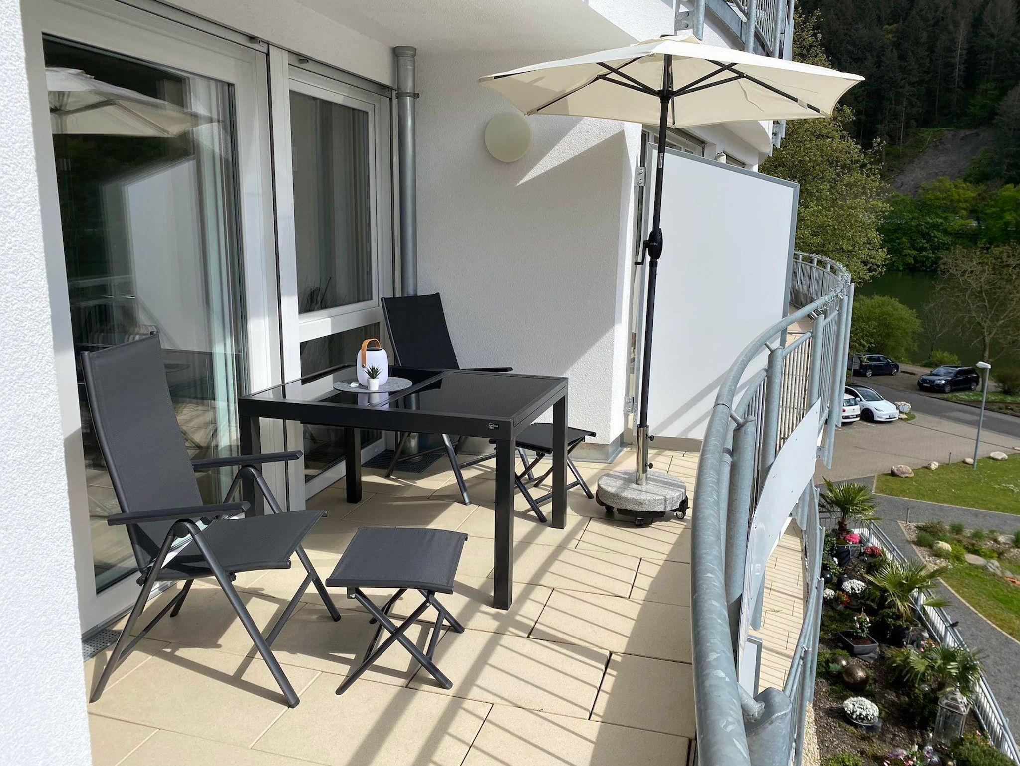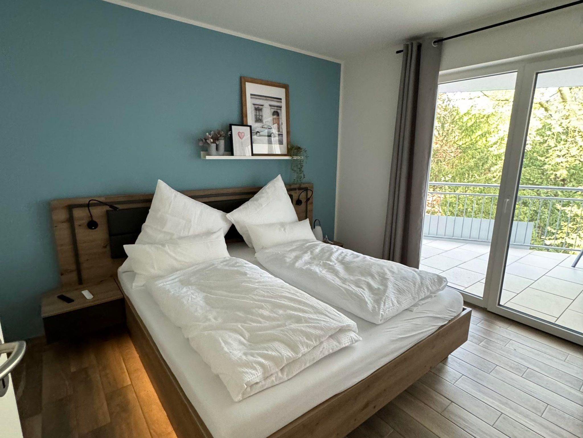Die 90 qm große Ferienwohnung Mosel 106,5 befindet sich in der 2018 erbauten modernen Wohnanlage Moselpark in Traben-Trarbach. Direkt an der Mosel gelegen bietet sie Ruhe und einen malerischen Blick auf die Mosel und das Wahrzeichen der Stadt, die Grevenburg, die von hier aus gut zu sehen ist.