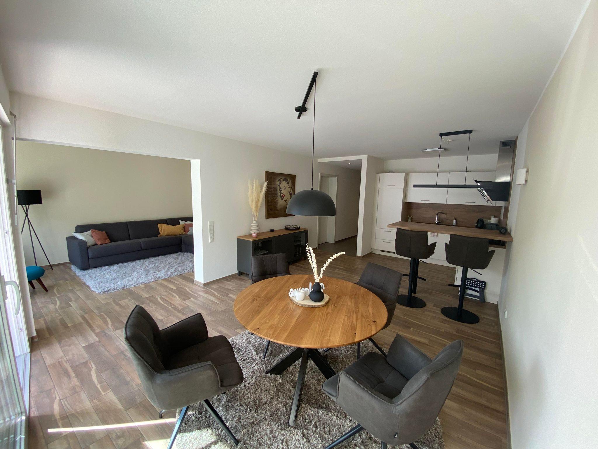 An der Theke mit Barhockern oder am Esstisch für 4 Personen lässt es sich gemütlich speisen und den Urlaub genießen.