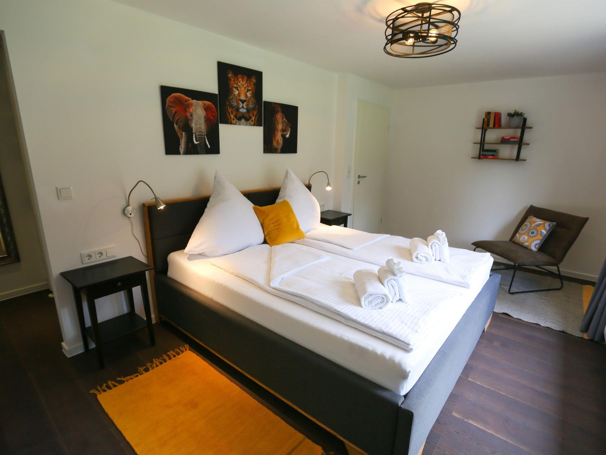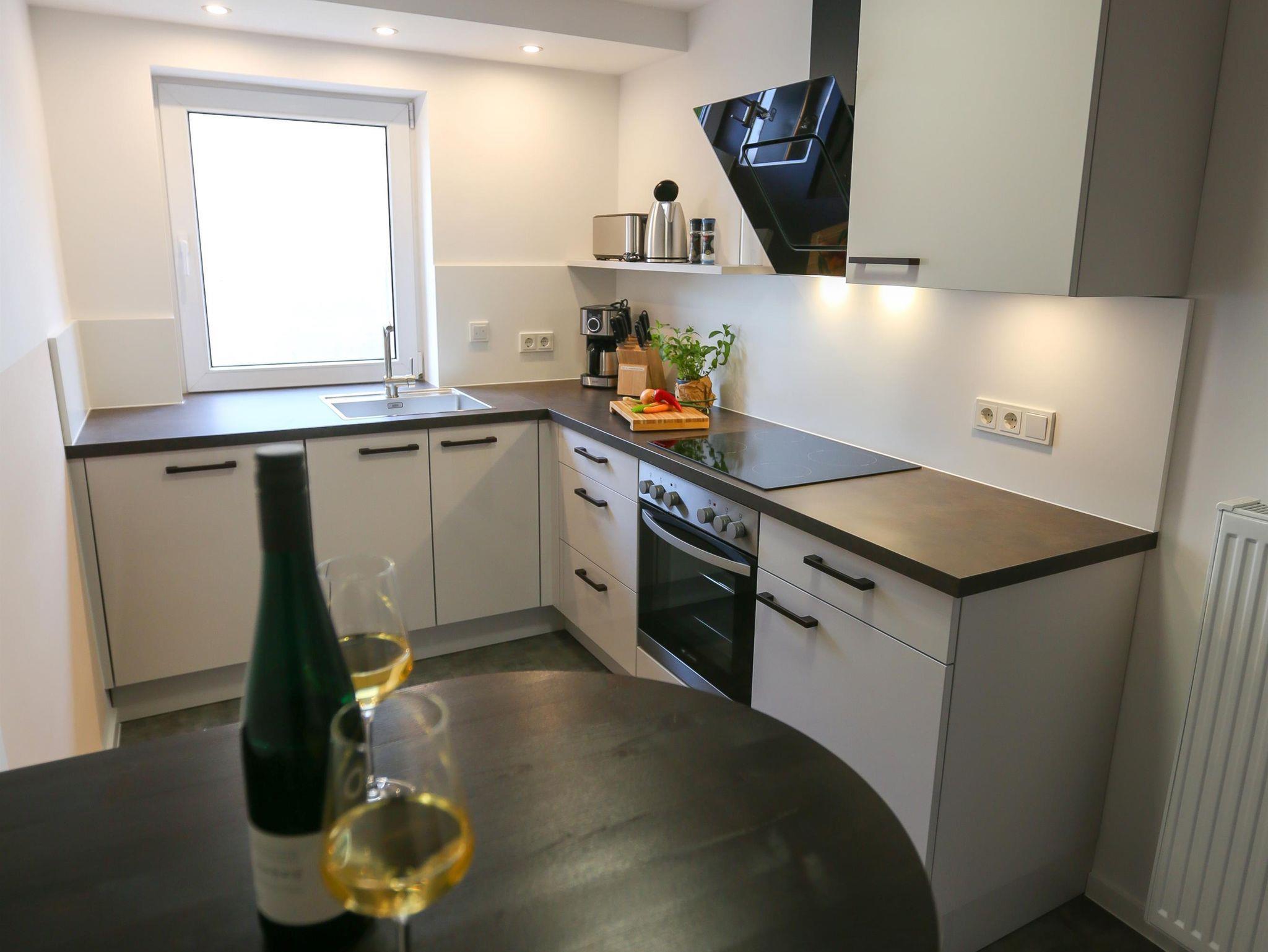 Die Wohnung ist ganz neu, mit hochwertigem Echtholz Eiche Parkettboden, modernem Badezimmer mit ebenerdiger Dusche. Das Schlafzimmer ist mit einem Boxspringbett mit neuen hochwertigen Matratzen sowie Sommer – Daunendecken in Komfortgröße ausgestattet. Sollte es mal etwas kühler sein gibt es zusätzlich auch kuschelige Fleecedecken. Neben kostenlosem W-Lan gibt es einen Flachbild-Sat-TV und eine Musikanlage mit Radio und Bluetooth. Eine neue, luxuriös ausgestattete Küche mit Geschirrspüler, Kühlschrank, Ceran Kochfeldherd, Backofen, Mikrowelle, Wasserkocher, Kaffeemaschine, Eierkocher, hochwertiges Geschirr und Besteck, Gläser aller Art und von allem viel mehr als Ihr benötigt Schirmständer mit 2 Automatikschirmen, Tresor für Deine Wertsachen und Papiere, Große Auswahl an Büchern, Spielesammlungen. Auf Anfrage stellen wir Euch ein Kinderbettchen und einen Hochstuhl in die Wohnung. Balkon mit Loungemöbeln, großer Garten mit Rasenflächen. Eine große Garage bietet Platz für Eure mitgebrachten Fahrräder, sowie Ladestation für Eure E-Bikes. Eine Wallbox ermöglicht das Laden Deines Elektroautos. Zur Begrüßung schenken wir Euch eine Flasche Riesling aus unserem eigenen Weingut Römerhof. In unserer zweiten Location „Moselblick am Waldrand, Zur Gonzlay 19, Stadtteil Wolf,