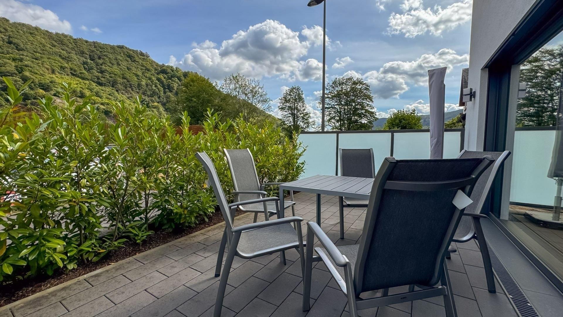 Das Moselhaus Krieger in Traben-Trarbach liegt direkt an der Mosel. Die Wohnung Nr. 2 für bis zu 4 Personen bietet alles für den erholsamen Urlaub. Das Appartement ist ausgestattet mit einem Schlafzimmer mit Doppelbett und Kleiderschrank, einem Schlafzimmer mit Einzelbett und Kleiderschrank, einem Badezimmer inkl. Regendusche, eine offene, moderne und vollausgestattete Wohn-Küche. Der Außenbereich bietet Platz für gemütliche Abendstunden durch einen Tisch für bis zu 4 Personen.