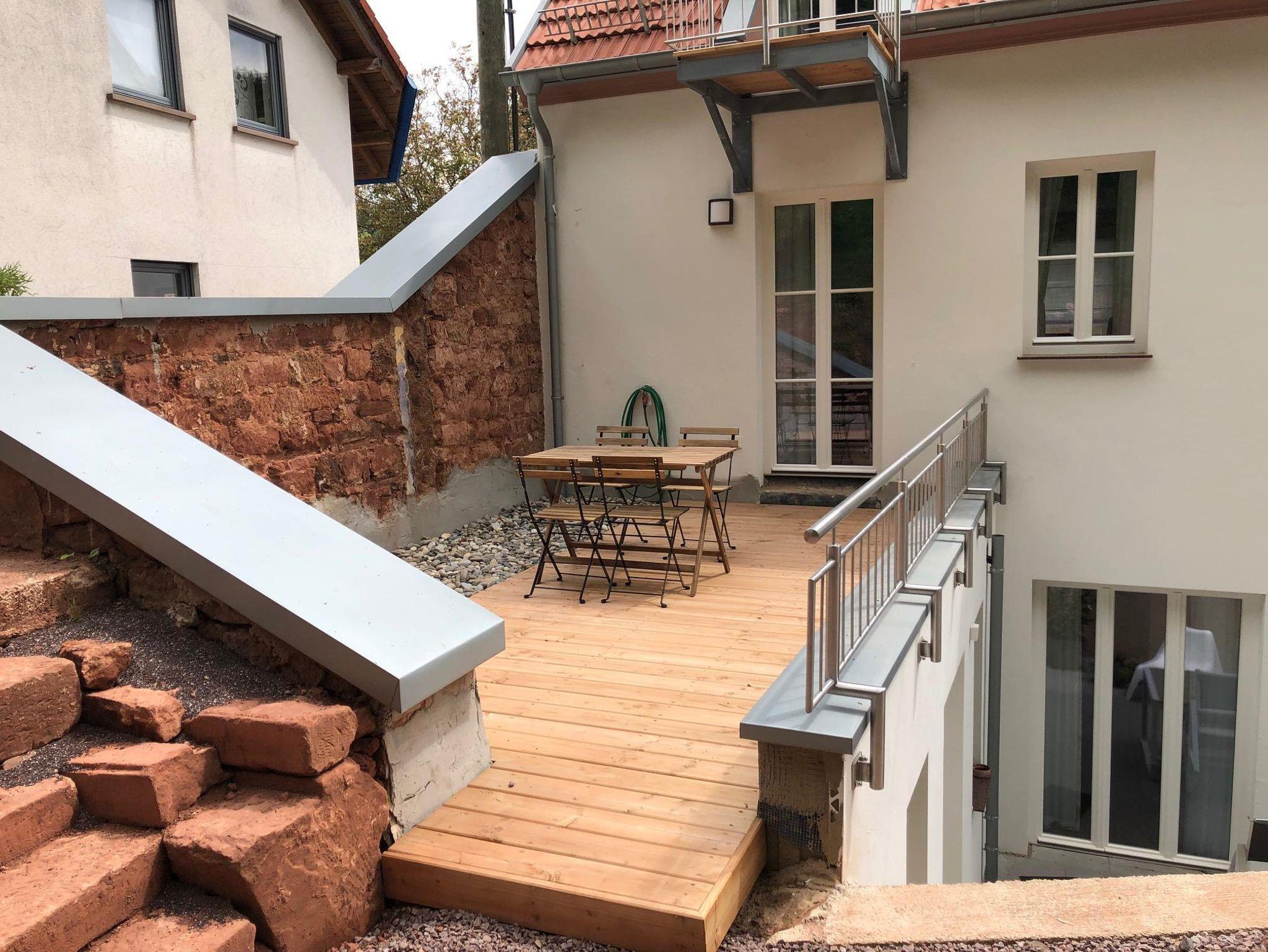 Privater Stellplatz für Autos und Garage für Fahrräder. Separate Terrasse im EG und OG. Wellness mit Sauna, Relax-Dusche, Fußbad und Liegen. Waschmaschine und Trockner zur gemeinsamen Nutzung im Flur des Erdgeschosses, ebenso ein kleiner Infodesk mit ausführlichen Informationen für Ihren Aufenthalt.