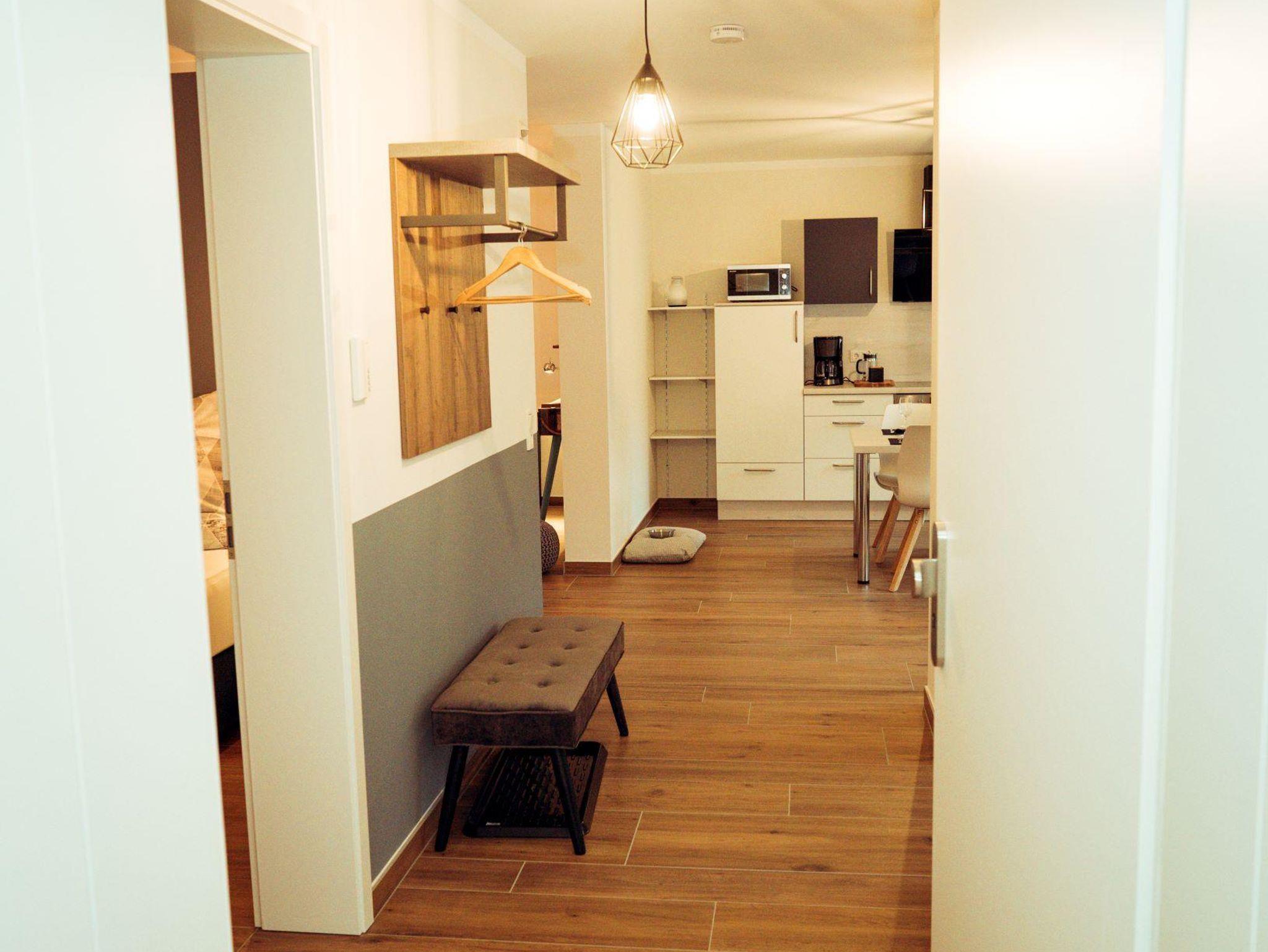 Jede Wohnung ist hochwertig ausgestattet mit Einbauküche (Herd, Backofen, Geschirrspülmaschine, Mikrowelle), Bad/WC mit barrierefreier Dusche, W-LAN und TV.