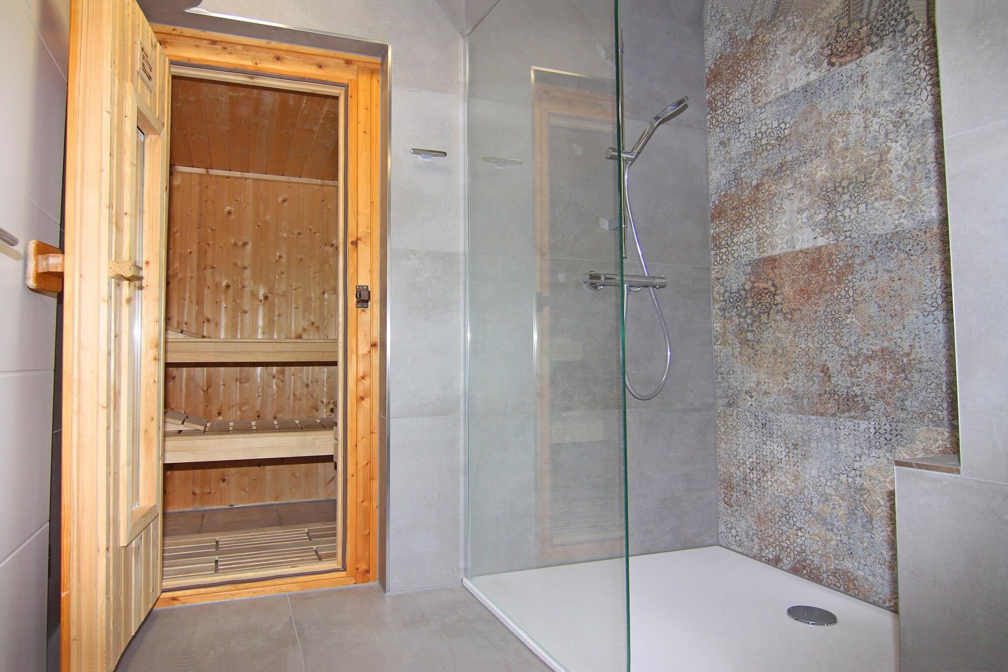 Parterre: (offene Küche(Esstisch, Kochplatte(4 Kochplatten, Ceranfeld), Wasserkocher, Toaster, Dunstabzugshaube, Kaffeemaschine, Backofen, Mikrowelle, Spülmaschine, Kühl-/Gefrierkombination), Wohn/Esszimmer(TV(Satellit), Radio, CD-Spieler, Heizung(Fußbodenheizung), Heizung(elektrisch)), Schlafzimmer(Doppelbett), Badezimmer(Dusche, Waschbecken, Toilette)) In der 1. Etage: (Schlafzimmer(Doppelbett), Schlafzimmer(2x Einzelbett, TV), Badezimmer(Dusche, 2x Waschbecken, Toilette)) Dachgeschoss: (open sleeping areas(Einzelbett), Einzelbett) Sauna(alleinige Nutzung), Waschmaschine, Terrasse, Gartenmöbel, Parkplatz, Hochstuhl, Babybett (kostenpflichtig), Handtücher/Bettwäsche (extra Gebühr)