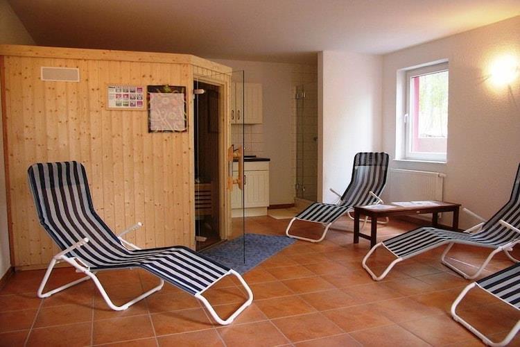 Parterre: (offene Küche(Esstisch(4 Personen), Kochplatte(4 Kochplatten, Ceranfeld), Wasserkocher, Toaster, Kaffeemaschine, Backofen, Mikrowelle, Kühlschrank(+ Gefrierfach)), Wohn/Esszimmer(Doppelschlafcouch, TV(Satellit), Radio, CD-Spieler), Schlafzimmer(Doppelbett), Badezimmer(Dusche, Waschbecken, Toilette)) Zentraler Grill, Sitzecke, Sauna(Gemeinschaftliche Nutzung mit anderen Gästen, gegen Gebühr), Heizung(Gas), Terrasse, Gartenmöbel, Grill, Parkplatz, Babybett (kostenpflichtig), Handtücher/Bettwäsche (extra Gebühr)