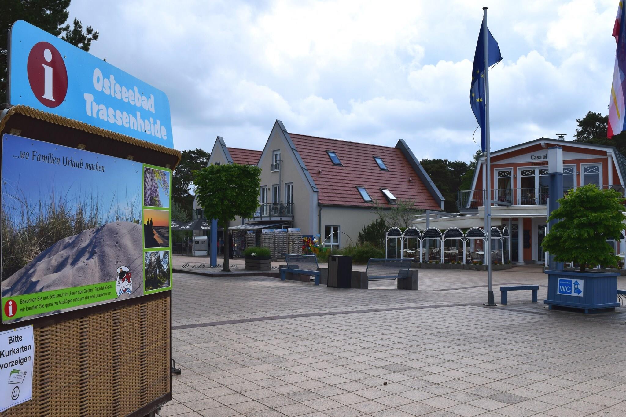 Dieses moderne und gemütliche Appartement befindet sich in einem Appartementhaus nur 300 m vom Sandstrand und der Promenade entfernt. Ihre Unterkunft befindet sich am Rande der kleinen, familienfreundlichen Ferienanlage Strandidyll, in dem Haus, das am dichtesten zum herrlich langläufigen Strand liegt. Das Appartement befindet sich im Erdgeschoss mit eigener Terrasse in ruhiger Lage. Es ist modern und ansprechend ausgestattet mit allem, was man für einen erholsamen Urlaub benötigt. Im Hauptschlafzimmer erwartet die Gäste ein neues Doppel-Boxspringbett. Gäste, die mit dem Pkw anreisen, können diesen auf dem zur Unterkunft gehörenden Parkplatz abstellen. Trassenheide ist ein ruhigeres Seebad im Norden Usedoms, das bei Erholungssuchenden und Wasserratten gleichermaßen beliebt ist. Nur 3 Kilometer entfernt liegt der etwas lebhaftere Ort Zinnowitz, den sie bequem bei einem Strandspaziergang erreichen können. Die 3 Kaiserbäder Bansin, Heringsdorf und Ahlbeck sind zwischen 26 und 30 km. Highlights inklusive: WLan, Pkw-Stellplatz, Aktivitäten in der Nähe: Die Haltestelle der Usedomer Bäderbahn befindet sich 900 m Entfernung und bringt Sie von Peenemünde bis nach Swinemünde über die gesamte Insel Usedom. Badminton, Fitnesscenter, Sauna und Squash befinden sich in unmittelbarer Nähe. Besuchen Sie das "Haus auf dem Kopf" bei Trassenheide und fühlen Sie sich wie eine Fliege an der Zimmerdecke. Im Kinderland von Trassenheide gibt es ebenfalls viel zu erleben. Ob Karussell, Kindereisenbahn, Westernbahn, eine der vielen Hüpfburgen, Schlittenrutsche oder Trampoline, die ohne Aufpreis nach Herzenslust benutzt werden dürfen. Hier findet jeder etwas nach seinem Geschmack! Riesen Legosteine und ein großzügig eingerichteter Fitnessplatz mit vielen Sportgeräten gehören ebenfalls dazu. Während die Großen eine Tasse Kaffee genießen, kann der Nachwuchs sich auf dem neuen supergroßen neuen Luftkissenball austoben. Scooterautos und Motorräder sowie Elektrobagger und Mini Golf gibt es gegen Münzeinwurf oder kleinen Aufpreis. Besuchen Sie in Peenemünde das Historisch-Technische Museum und das Spielzeugmuseum.