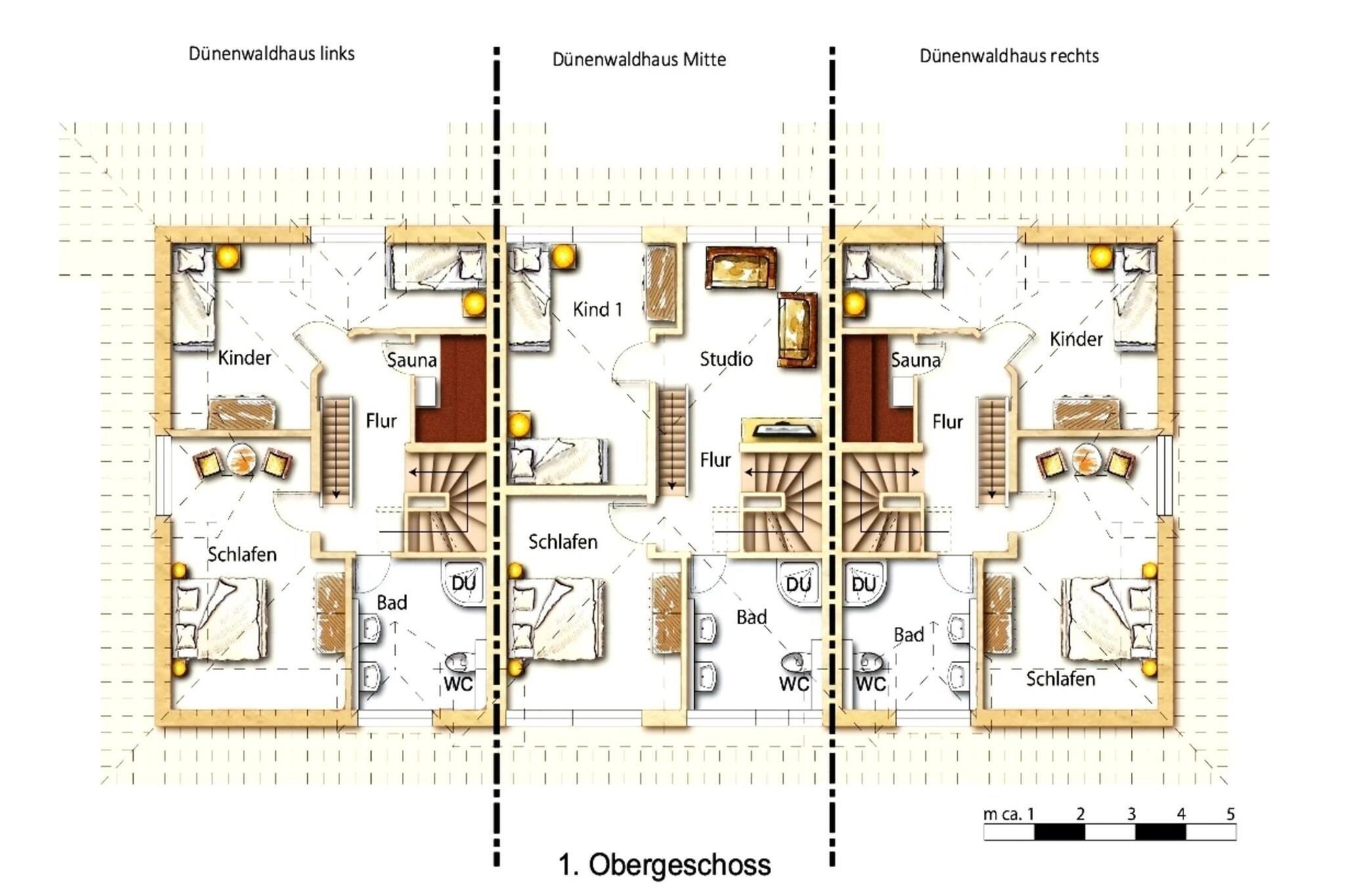 Exklusives Reihenhaus Dünenwaldhaus Mitte in Trassenheide, nur 100 m vom feinen Sandstrand und mit privater Sauna.