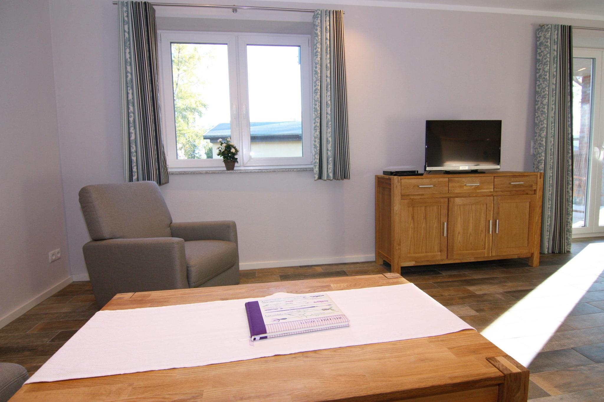 Parterre: (Badezimmer(Dusche, Waschbecken, Toilette)) In der 1. Etage: (Schlafzimmer(Doppelbett, TV(Satellit)), Schlafzimmer(2x Einzelbett), Badezimmer(Badewanne, Dusche, Waschbecken, Toilette)) offene Küche(Esstisch(6 Personen), Kochplatte, Wasserkocher, Toaster, Dunstabzugshaube, Kaffeemaschine, Backofen, Spülmaschine, Kühl-/Gefrierkombination), Wohn/Esszimmer(Doppelschlafcouch, TV(Satellit), Radio, CD-Spieler, Heizung(Fußbodenheizung), Heizung(Gas)), Sitzecke, Grill, Waschmaschine, Balkon oder Terrasse, Terrasse, Gartenmöbel, Parkplatz, Hochstuhl, Babybett (kostenlos), Handtücher/Bettwäsche (extra Gebühr)