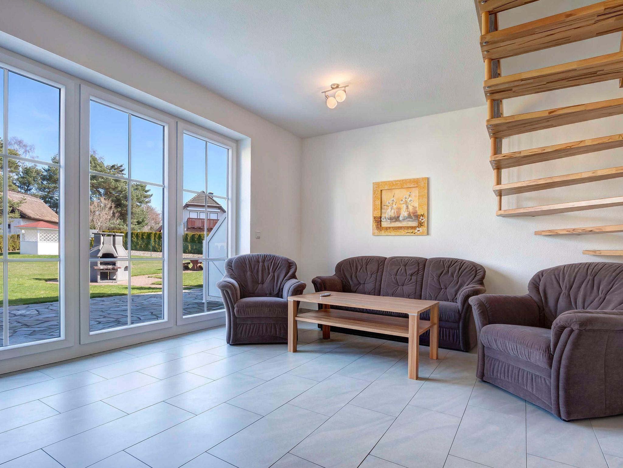 Jede Ferienhaushälfte verfügt über eine Sonnenterrasse mit Gartenmöbeln und Sichtschutz zum Nachbarn. Zum Ostseestrand sind es ca. 15?20 Minuten Fußweg.