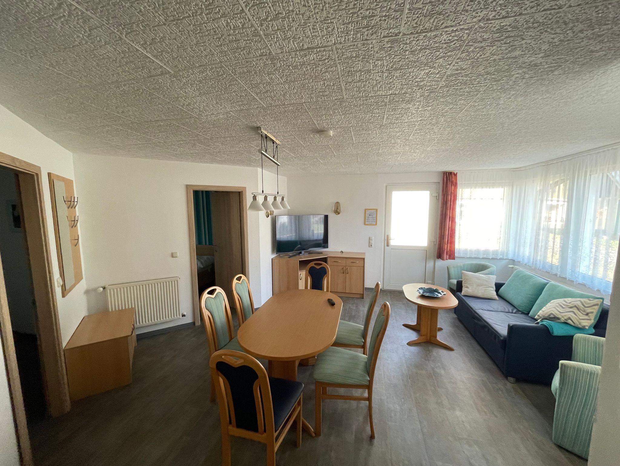Bei unseren Ferienwohnungen handelt es sich um eine Doppelhaushälfte mit jeweils zwei Schlafzimmern für maximal 5 - 6 Personen. Jede Ferienwohnung ist mit einer Küchenzeile ausgestattet und verfügt über ein eigenes Badezimmer mit Dusche und WC. Ein gemütlicher Wohn- und Essbereich lädt zum Zusammensein mit der Familie oder unter Freunden ein.