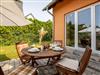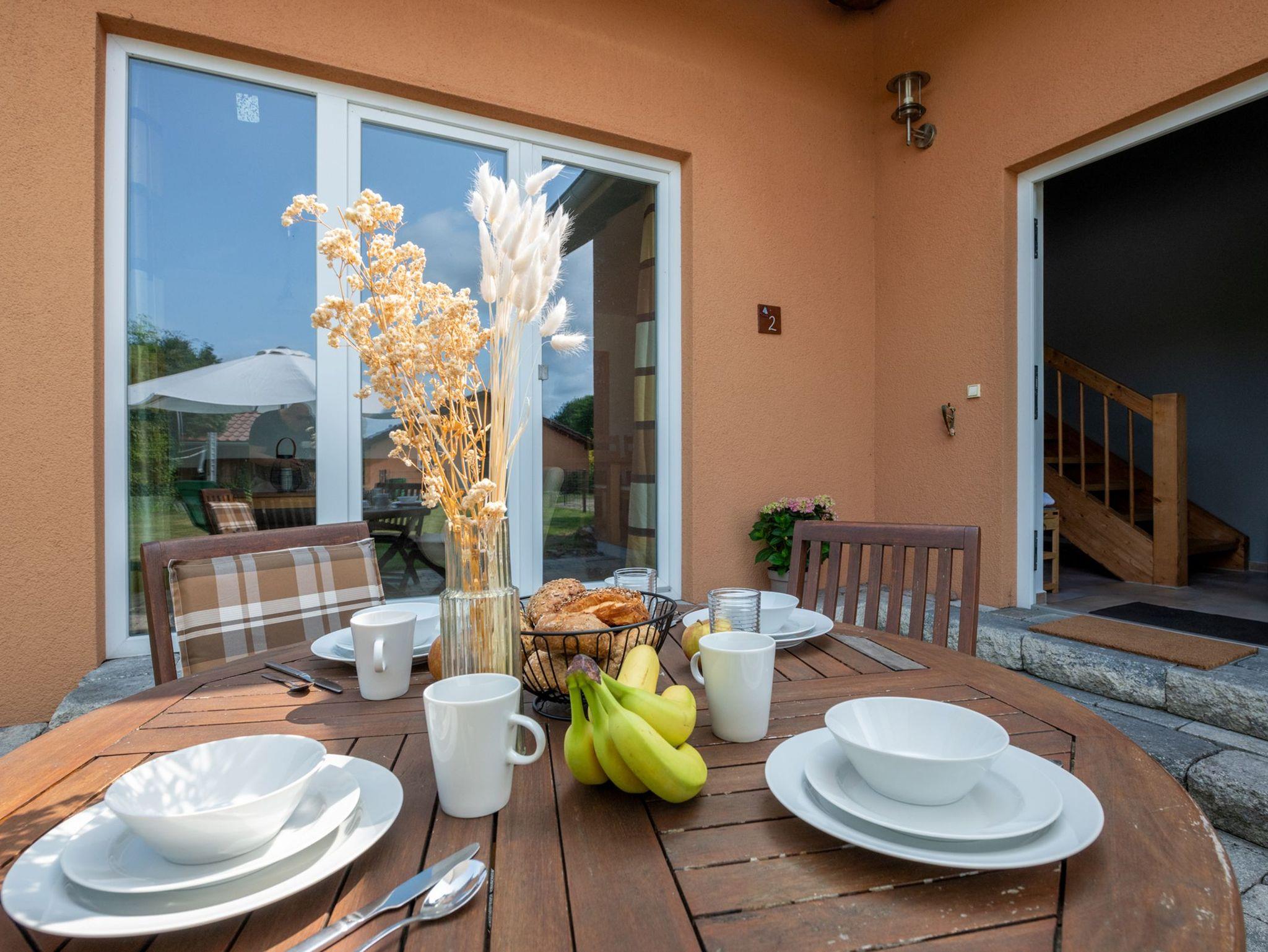 Zum Haus gehören zwei kostenfreie Parkplätze direkt am Grundstück sowie eine geschützte Terrasse mit Zugang zum Gartenbereich. Hier können Gäste ungestört entspannen oder gemeinsam grillen.