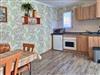 Küche mit 2 Plattenherd, Mikrowelle, Kühlschrank, Kaffeemaschine, Toaster,