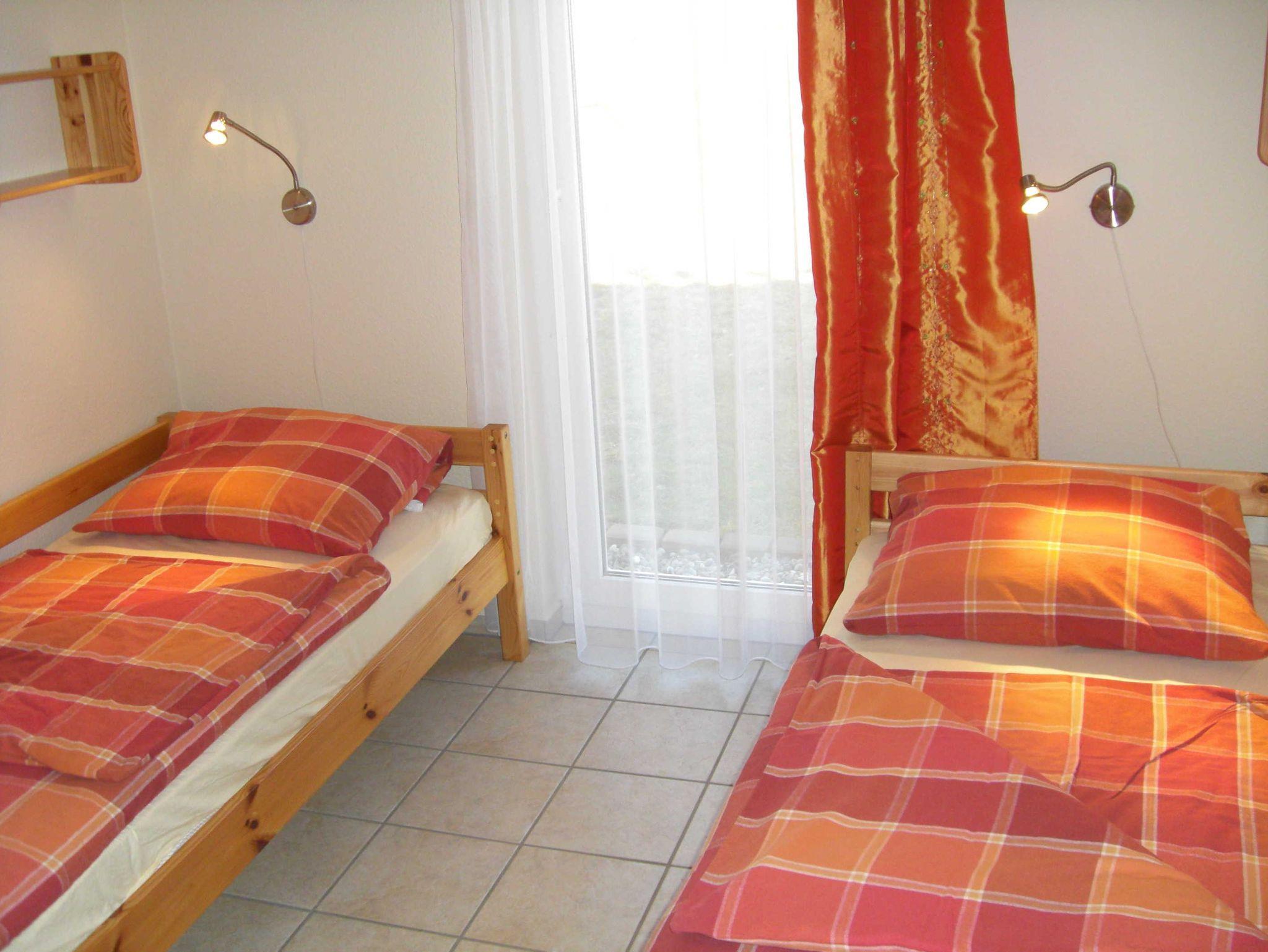 3-Raum-Wohnung, mit 1 Schlafzimmer mit Doppelbett und 1 Schlafzimmer mit zwei Einzelbetten.