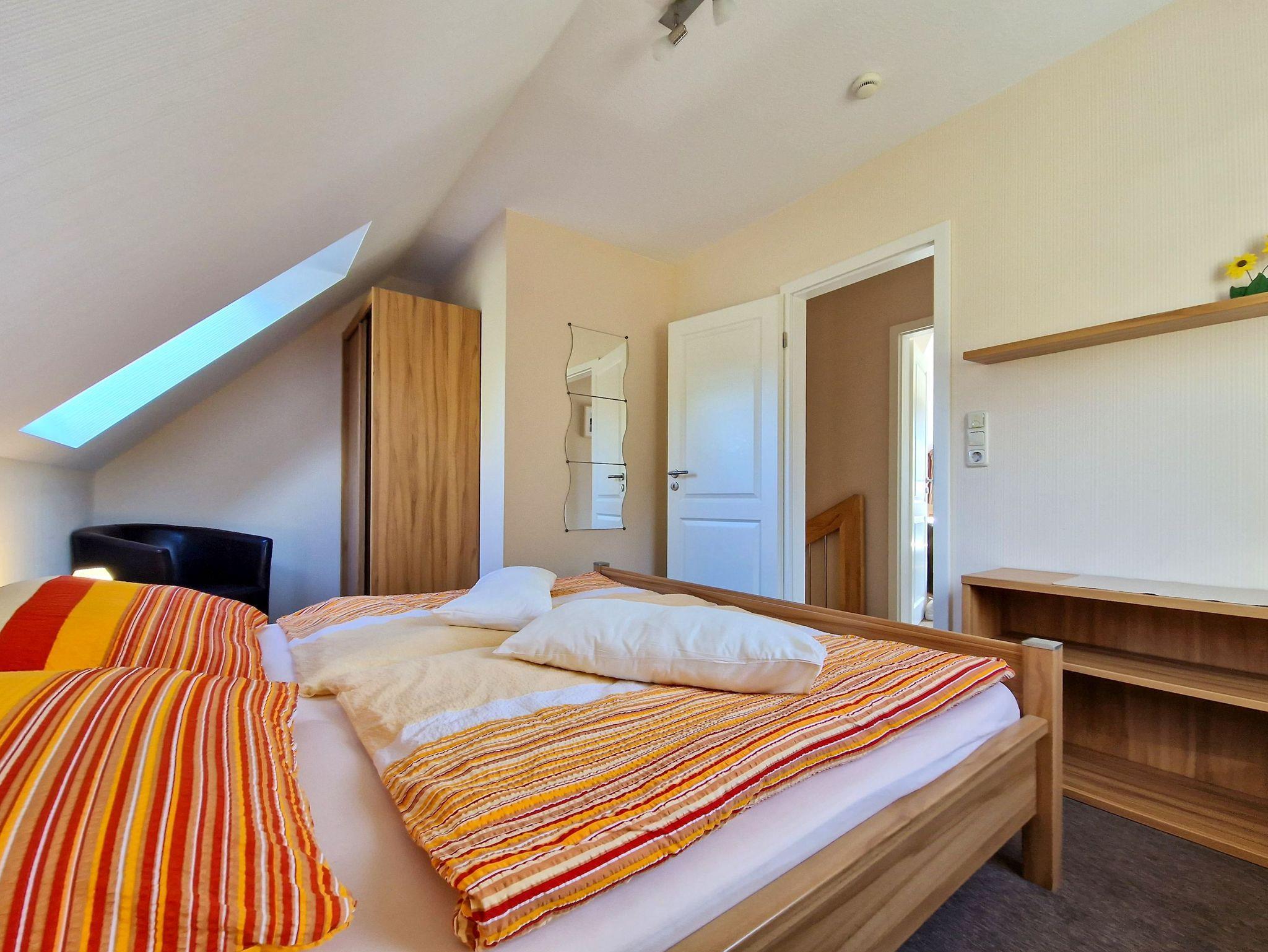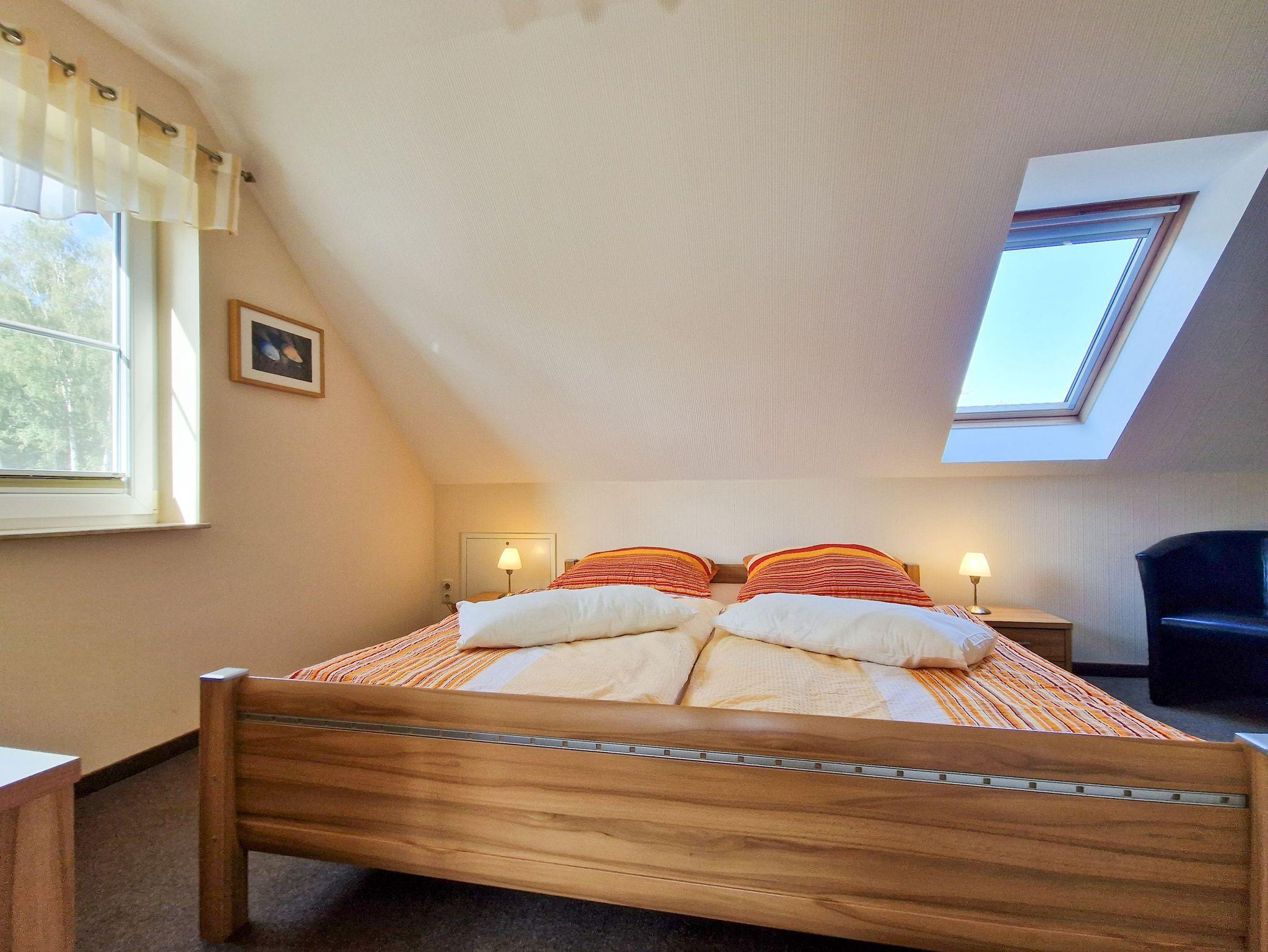 Im Obergeschoss befinden sich die beiden Schlafzimmer: eines mit einem gemütlichen Doppelbett und das andere mit zwei Einzelbetten.