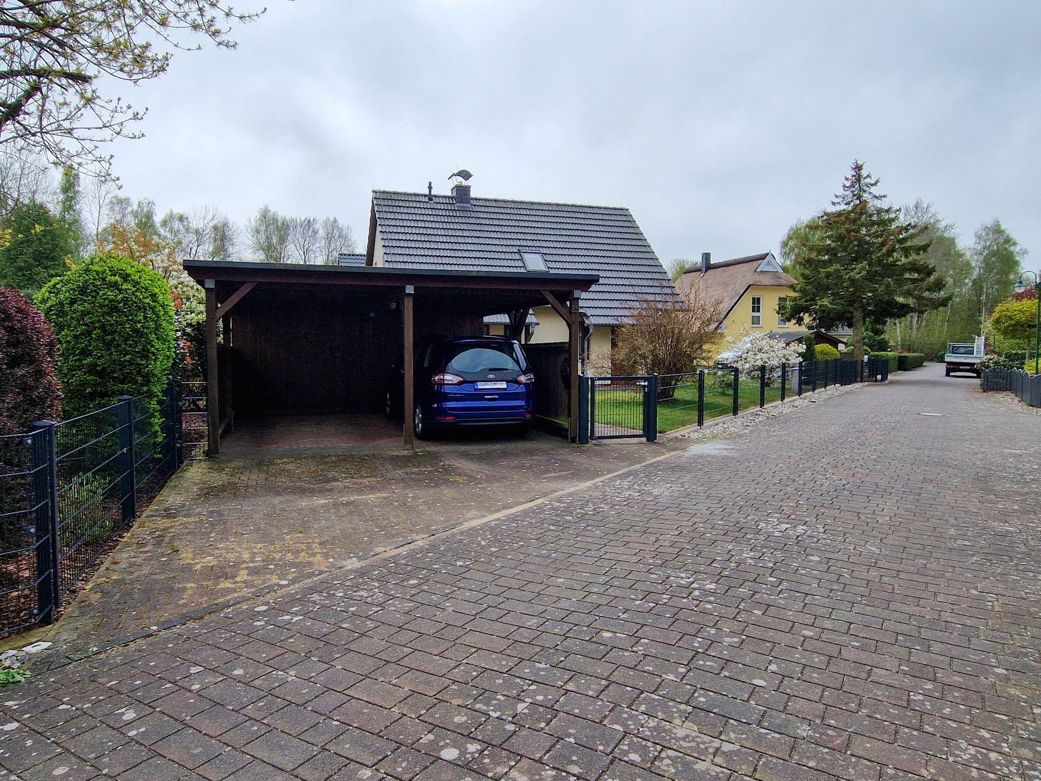 Beide Wohnungen verfügen über eine sonnige Terrasse mit Terrassenmöbeln und einem Pkw-Carport-Parkplatz. Auf dem Parkplatz der Wohnung 2 können zwei Pkws hintereinander stehen. Zudem gibt es einen Fahrradschuppen mit jeweils 2 einfach ausgestatteten Fahrrädern (Funktionszustand abhängig von der letzten Nutzung).