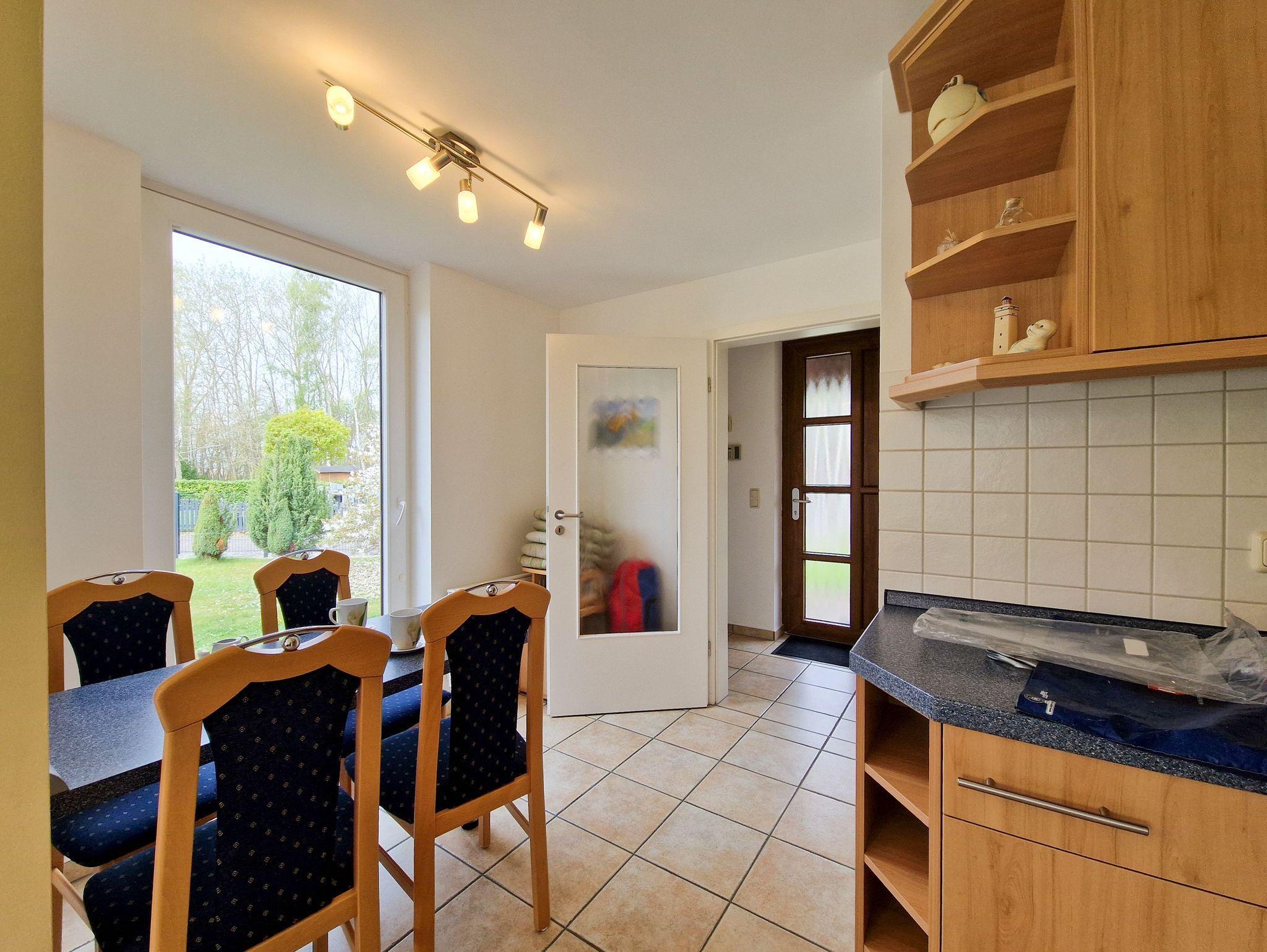 Vom Wohnbereich aus gelangen Sie direkt auf die Terrasse, die mit Gartenmöbeln, Grill und Sonnenliegen ausgestattet ist perfekt für entspannte Stunden im Freien. Die Küche lässt keine Wünsche offen und ist mit einem Backofen, Geschirrspüler, Mikrowelle, Kühlschrank mit Gefrierfach und Toaster ausgestattet.