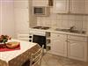 Küche mit 4 Plattenherd, Mikrowelle, Kühlschrank, Kaffeemaschine, Toaster,