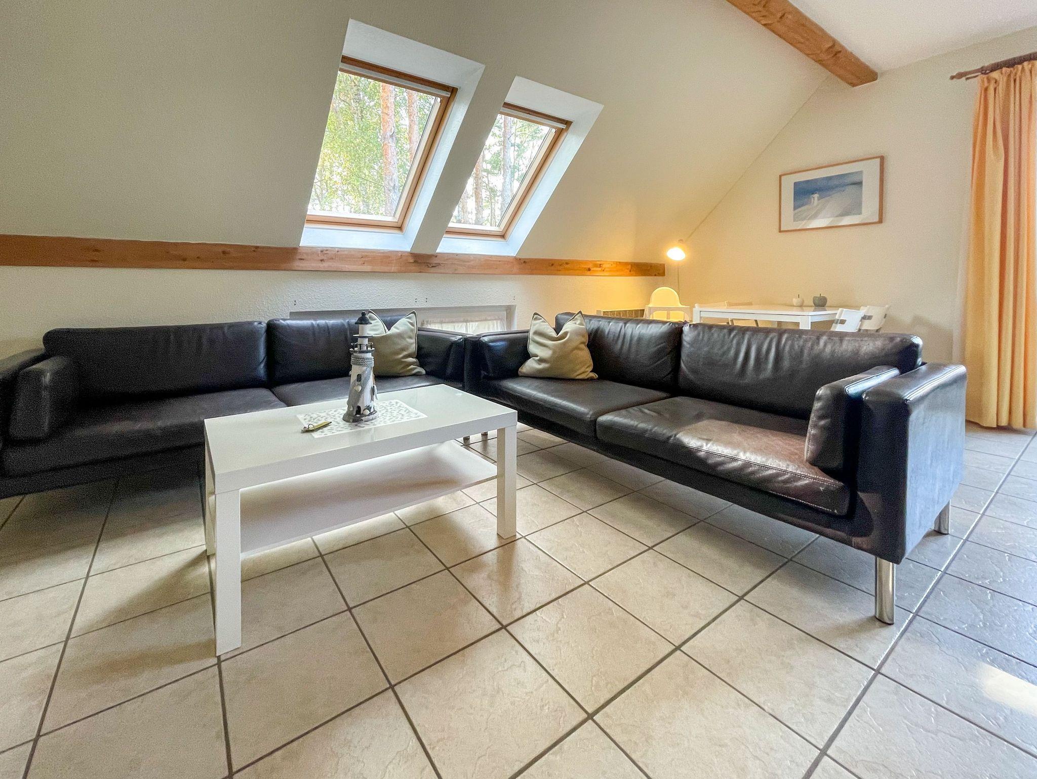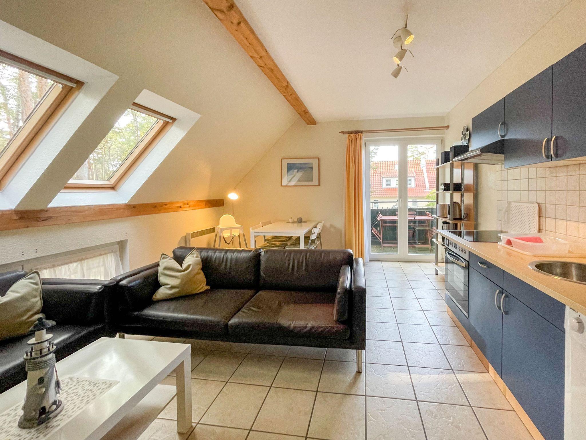 Familienfreundliche Ferienwohnung in Trassenheide, 300 m vom Strand, mit Balkon und Blick auf den Küstenwald.