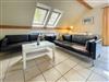 Geradezu befindet sich der großzügige Wohnraum mit einer offenen, umfangreich ausgestatteten Küchenzeile, einem Esstisch für 4 Erwachsene plus Hochstuhl und zwei bequemen Couches. Hier können Sie an regnerischen Tagen vor dem Flachbild-Fernseher gemütlich zusammensitzen. Die Küche verfügt über alles nötige, wie zum Bespiel einer Mikrowelle, einem Herd, einem Ofen, eine Geschirrspülmaschine etc. Im offenen Regal daneben finden Sie zusätzlich eine Musikanlage.