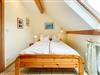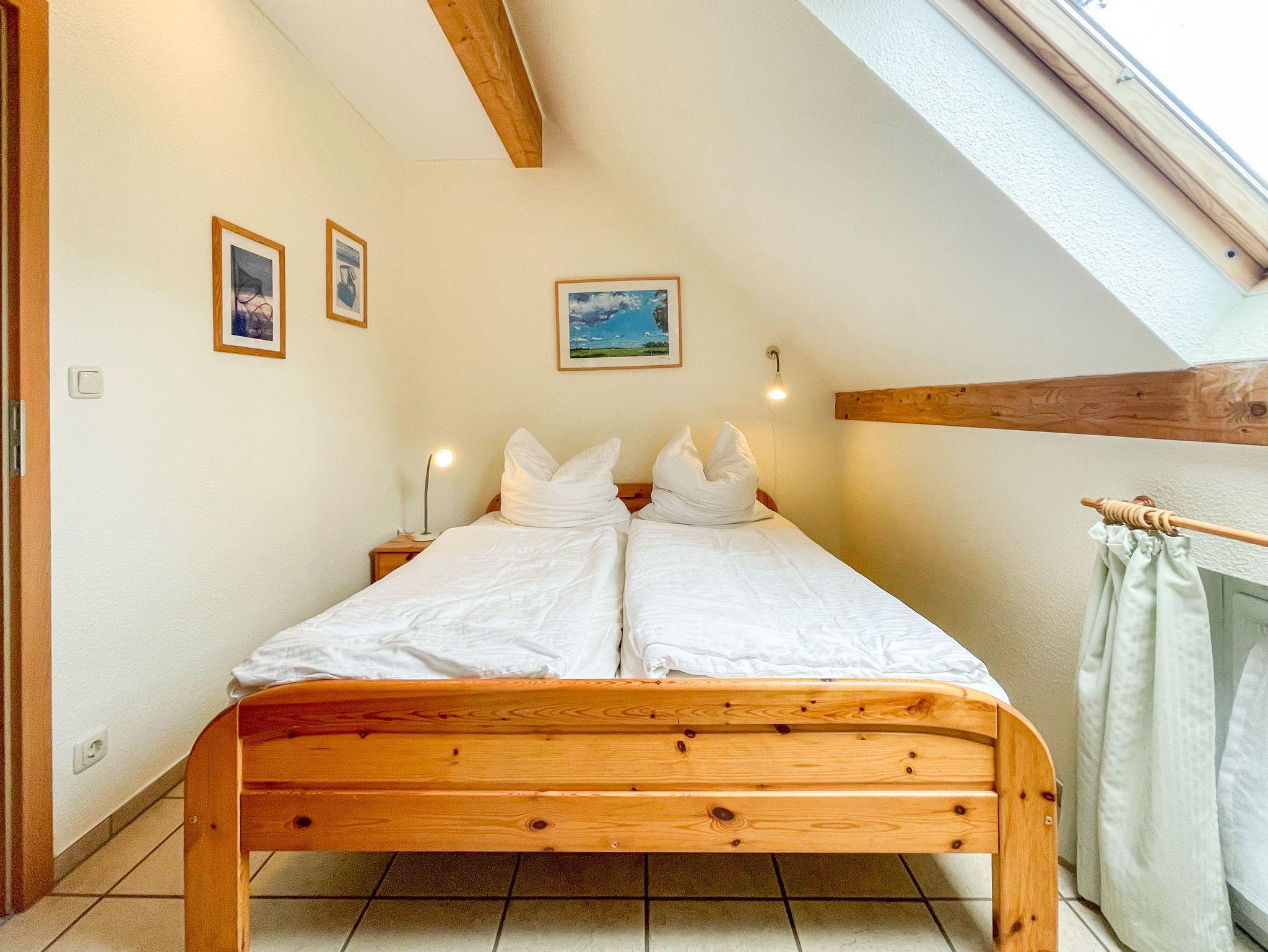 Neben dem Wohnzimmer liegt ein Schlafzimmer mit zwei Einzelbetten (je 100x200cm), einem großen Kleiderschrank und einer Kommode mit einem kleinen Flat-TV. Anschließend finden Sie das zweite Schlafzimmer mit einem großen Doppelbett (zwei Matratzen je 90x200cm) und einem Sideboard. Für die kleinen Gäste steht ein Reisebett und ein Hochstuhl kostenfrei zur Verfügung. Wäschepakete können Sie kostenpflichtig dazu buchen, geben Sie dies bitte bei der Buchung mit an.