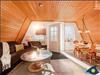 Das große Wohnzimmer im Erdgeschoss mit Ess- und Sitzecke, SAT-TV, DVD-Player, Radio mit CD und einer Garderobe mit Safe ist der Mittelpunkt des Appartements. Eine neu installierte Fußbodenheizung sorgt für wohlige Wärme auch an kühleren Tagen.