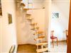 Zwei der Ferienwohnungen befinden sich im 1. Obergeschoss und sind über eine Außentreppe zugänglich. Diese Wohnungen haben ein Schlafzimmer mit Doppelbett auf der ersten Etage und ein zweites Schlafzimmer mit zwei Einzelbetten im Spitzboden, das über eine Raumspartreppe erreicht wird. Bitte beachten Sie, dass diese Treppe sehr steil ist und für Personen mit körperlichen Einschränkungen oder kleinere Kinder ungeeignet sein könnte. Jede dieser Wohnungen bietet außerdem einen Balkon, der mit Sitzmöbeln ausgestattet ist.