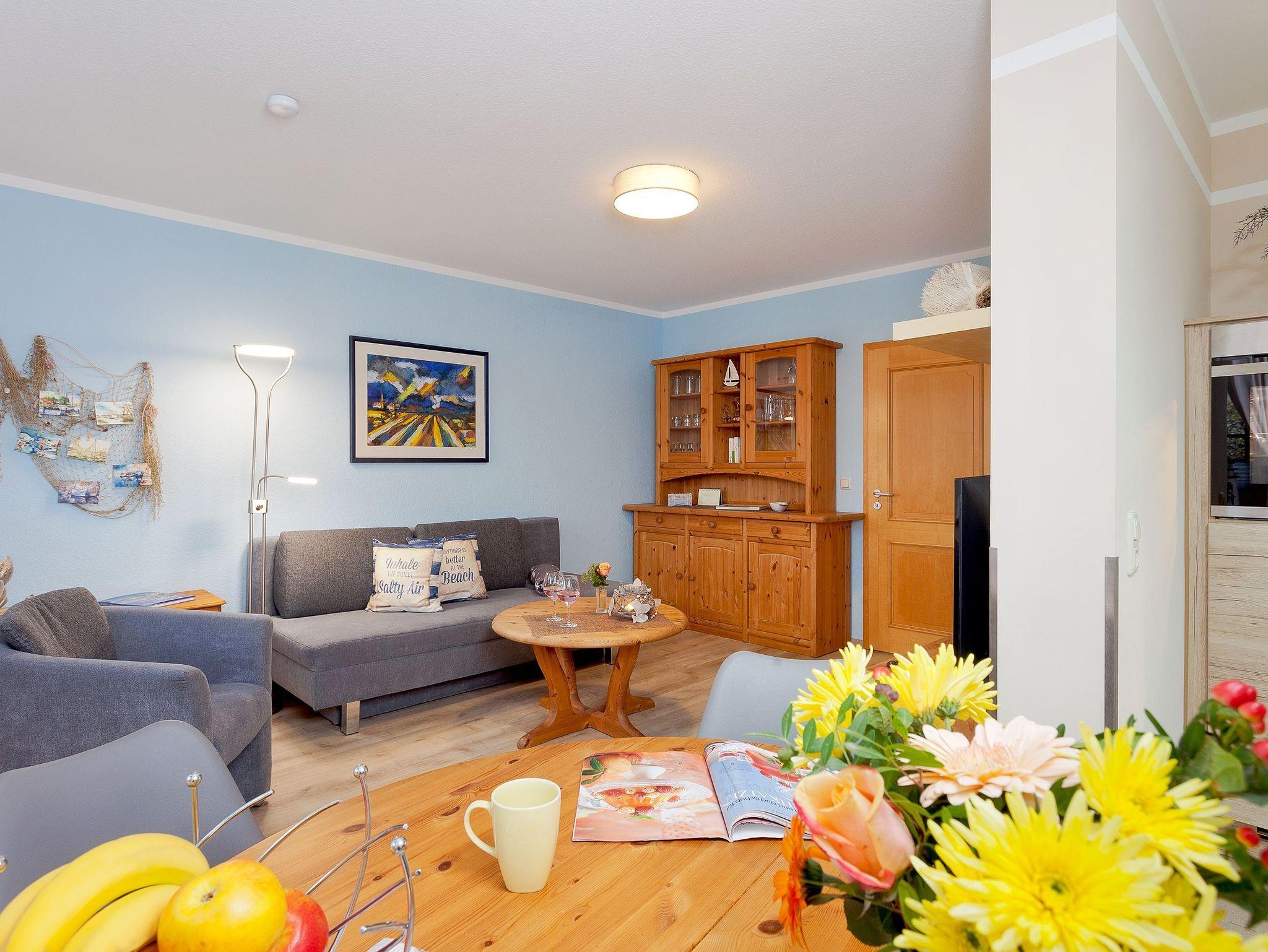 • Wohnzimmer mit SAT-TV, Radio, vollwertig ausziehbare Schlafcouch