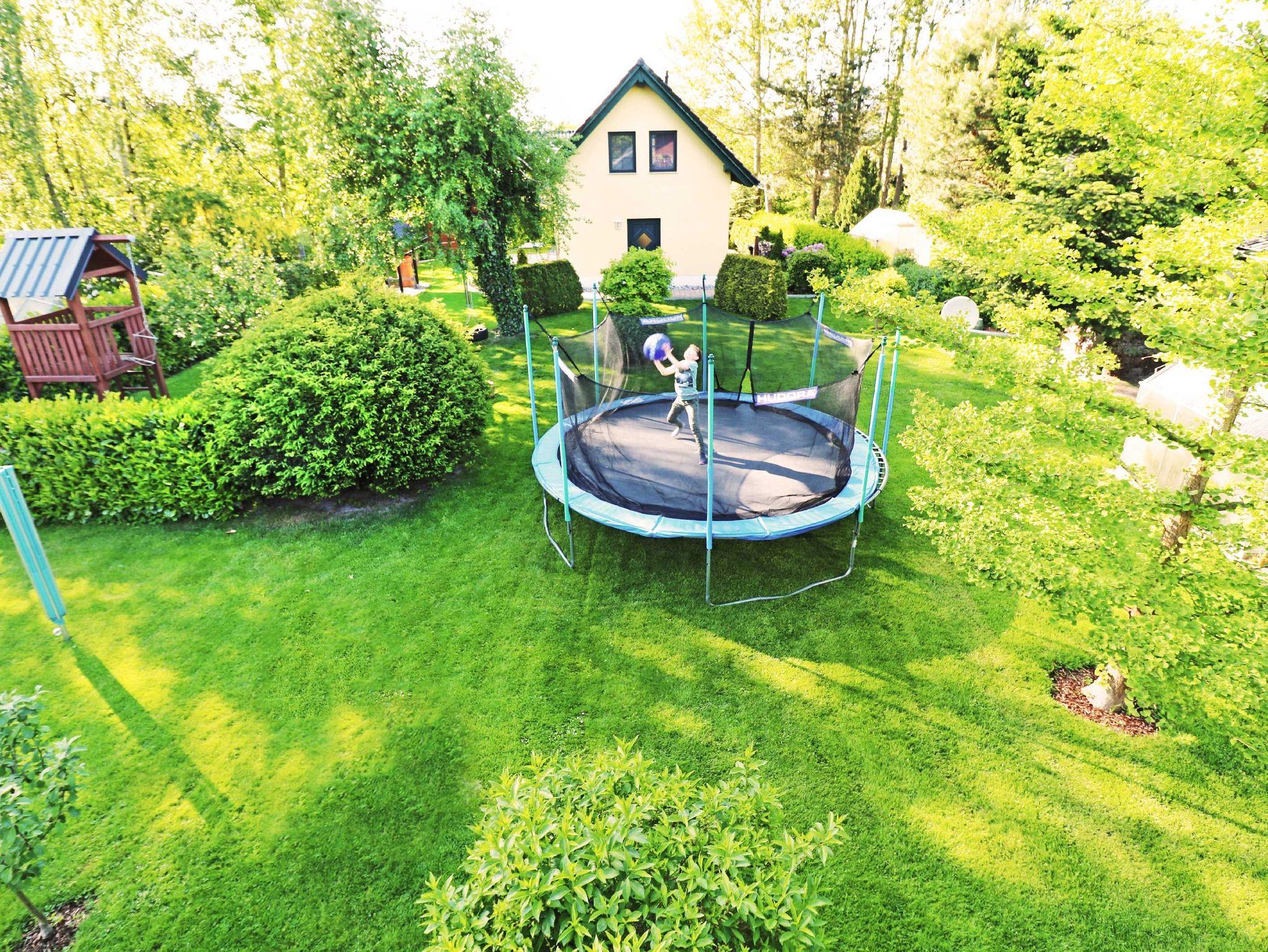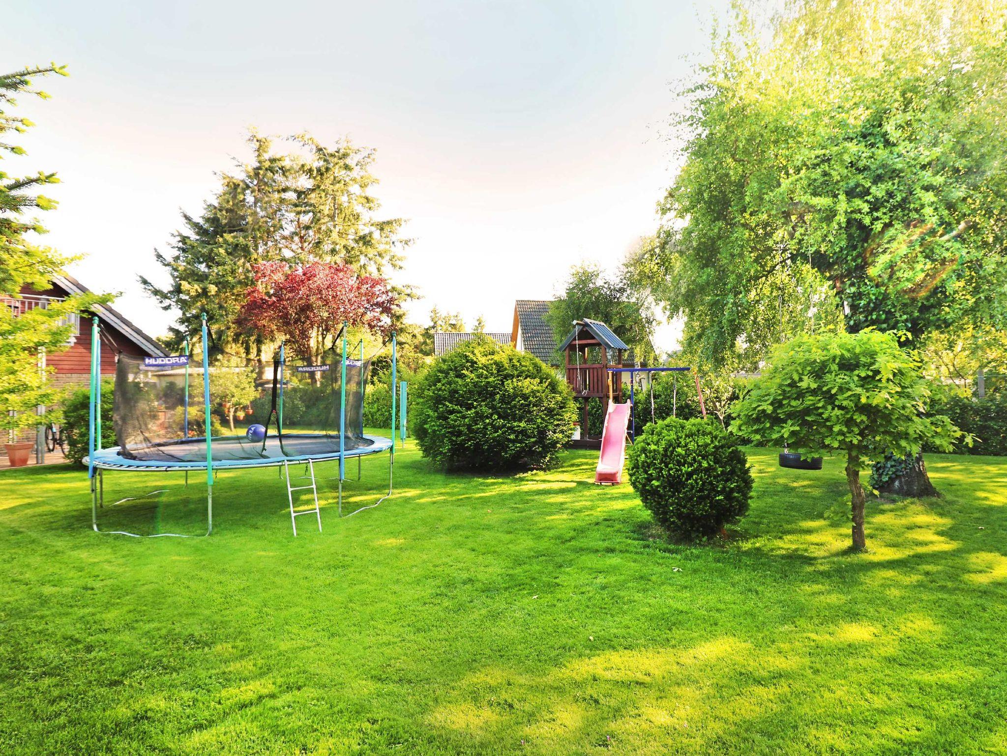Der vollständig umzäunte Garten, der Spielbereich mit einem Trampolin und einem kleinen Baumhaus kann während Ihres Aufenthaltes von Ihren Kindern genutzt werden. Mit dem nur 1 km entfernten Kinderland ist das Objekt ideal für einen Familienurlaub geeignet.
