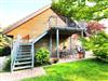 Die Dachgeschossferienwohnung verfügt über einen separaten Eingang und einen Balkon mit Blick auf den grünen Garten und das gegenüberliegende Ferienhaus. Auf dem Balkon befindet sich ein großzügiger Esstisch und mehrere Sitzgelegenheiten.