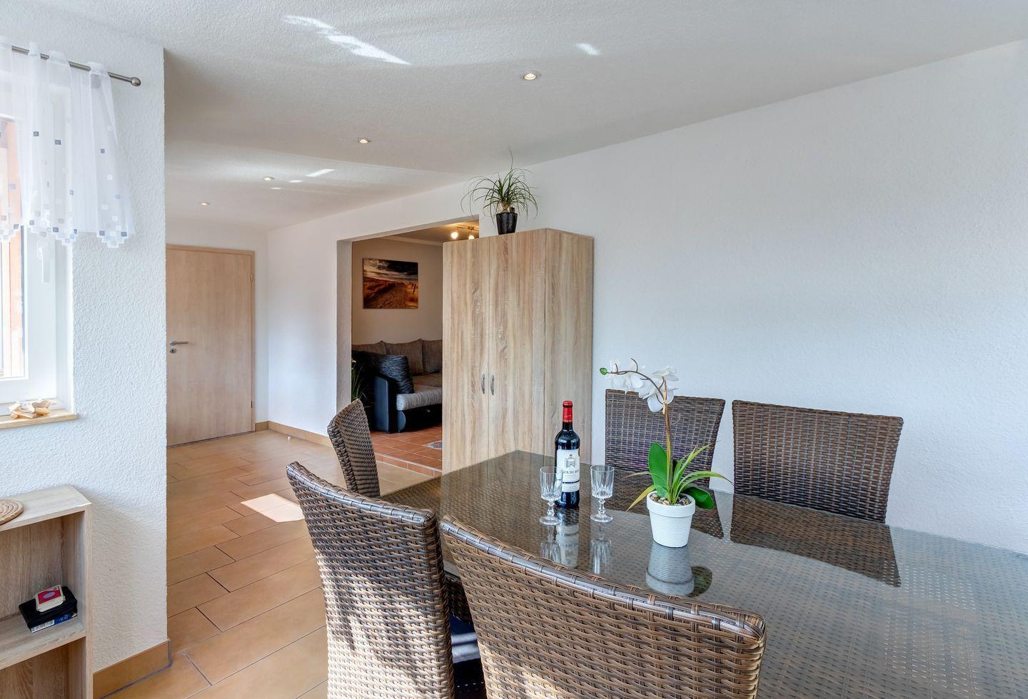 Drei separate Schlafzimmer, darunter zwei mit Doppelbetten und eines mit einem Hochbett, garantieren erholsame Nächte. Die Betten sind bei Ihrer Anreise bereits bezogen, und Handtücher liegen als Erstausstattung bereit. Der großzügige Schlafraum ist zudem mit einem TV ausgestattet.