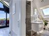 Das moderne Badezimmer überzeugt mit seinem Design sowie einer ebenerdigen Dusche und hochwertigen Ausstattung.