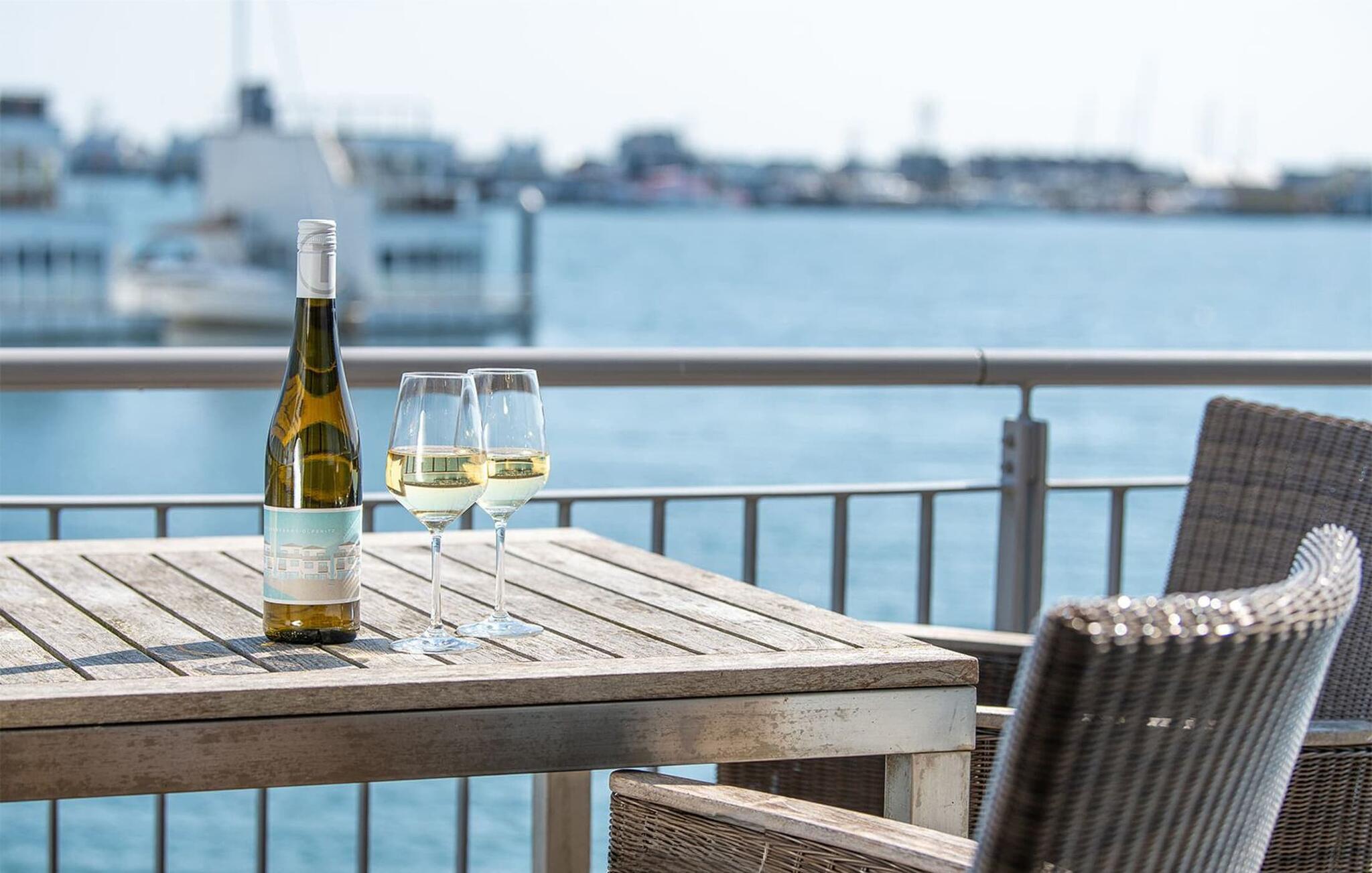 Der Höhepunkt ist die 25 m² große Dachterrasse, die einen Rundum-Wasserblick auf die Schlei, ihre Mündung in die Ostsee und den Hafen des Resorts bietet. Hier kann die Sonne in vollen Zügen genossen werden.