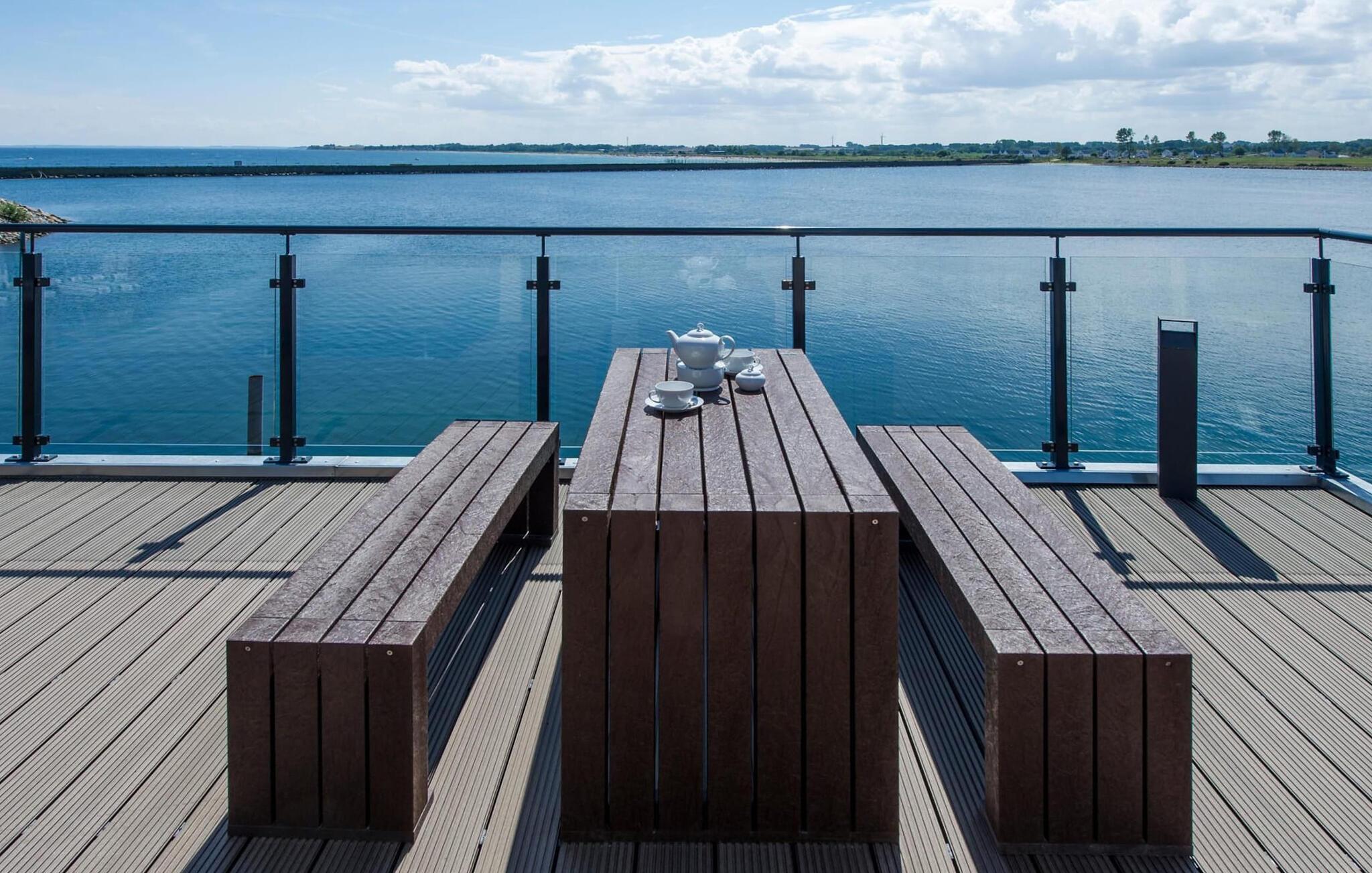 Die Ferienwohnung besticht hierbei mit einem atemberaubenden Blick über die Marina, die Schleimündung und die Ostsee, während das Staffelgeschoss mit großer Sonnenterrasse die Möglichkeit bietet, über Hafenkino und Wellengang zu verweilen. Mit Sauna, zwei Kaminöfen und Badewanne ausgestattet, bietet diese Ferienwohnung Traumzeiten zu jeder Jahreszeit. Natürlich und klar gestaltet sich die Inneneinrichtung dieser Ferienwohnung, welche bewusst schlicht mit natürlichen Materialien, klaren Formen und gedeckten Farben besticht.