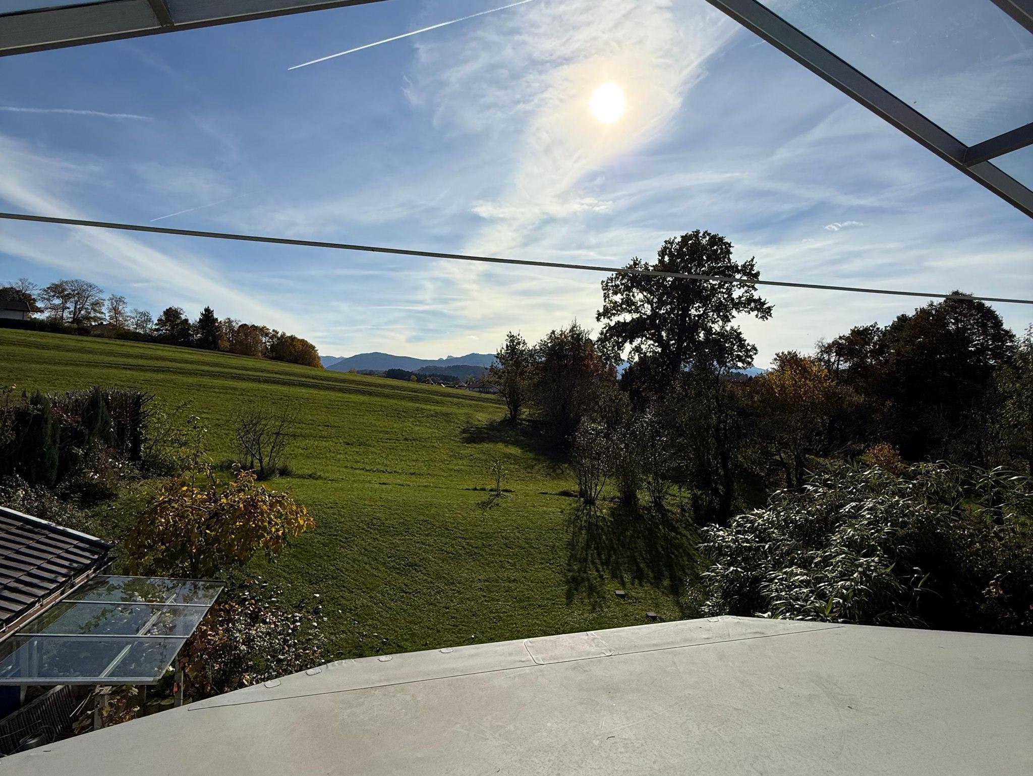Das Haus liegt in der Stadt Traunstein und trotzdem naturnah.