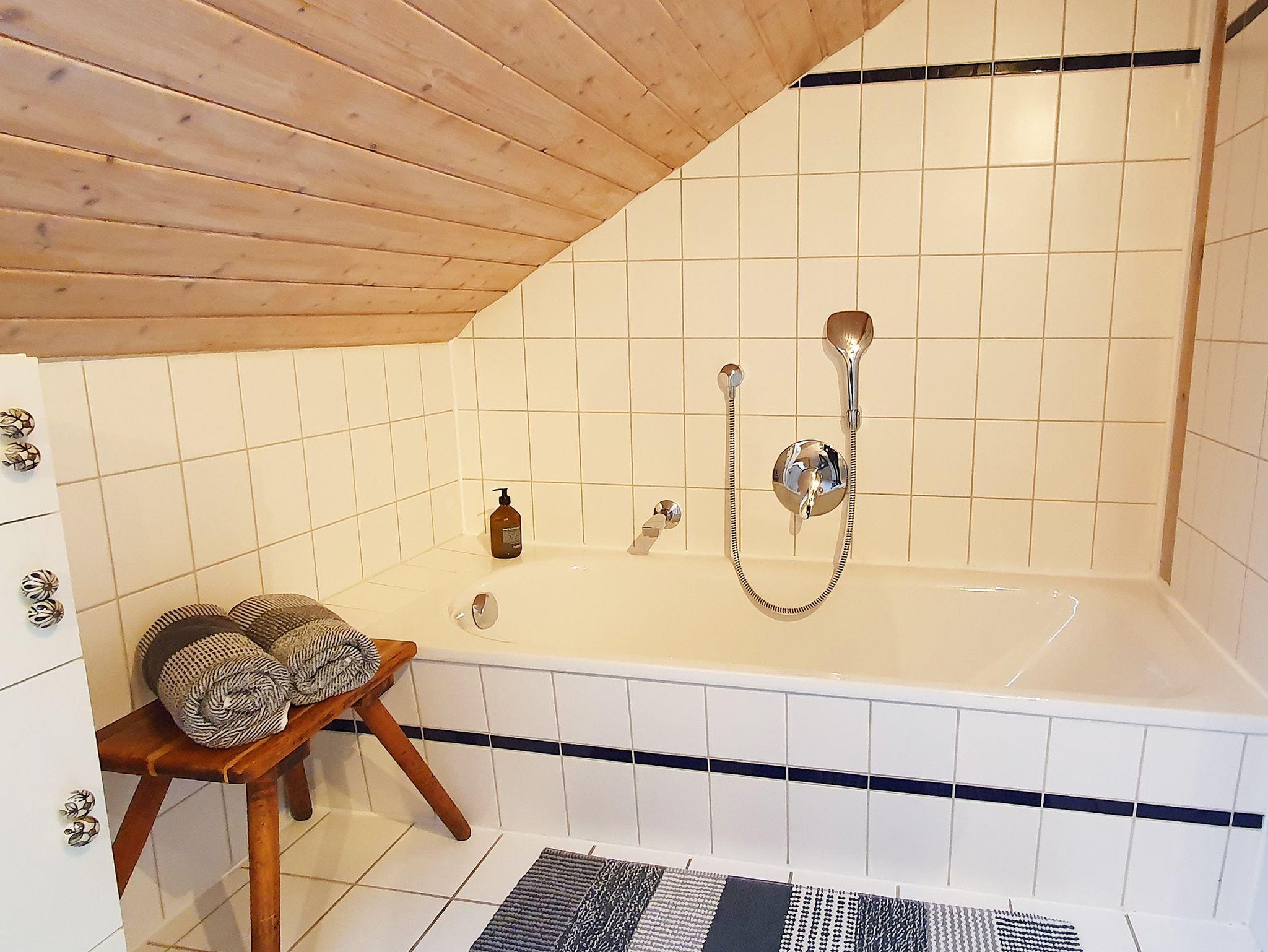 … mit separatem Bad inkl. Badewanne, in dem ein Haartrockner für Sie bereit liegt.