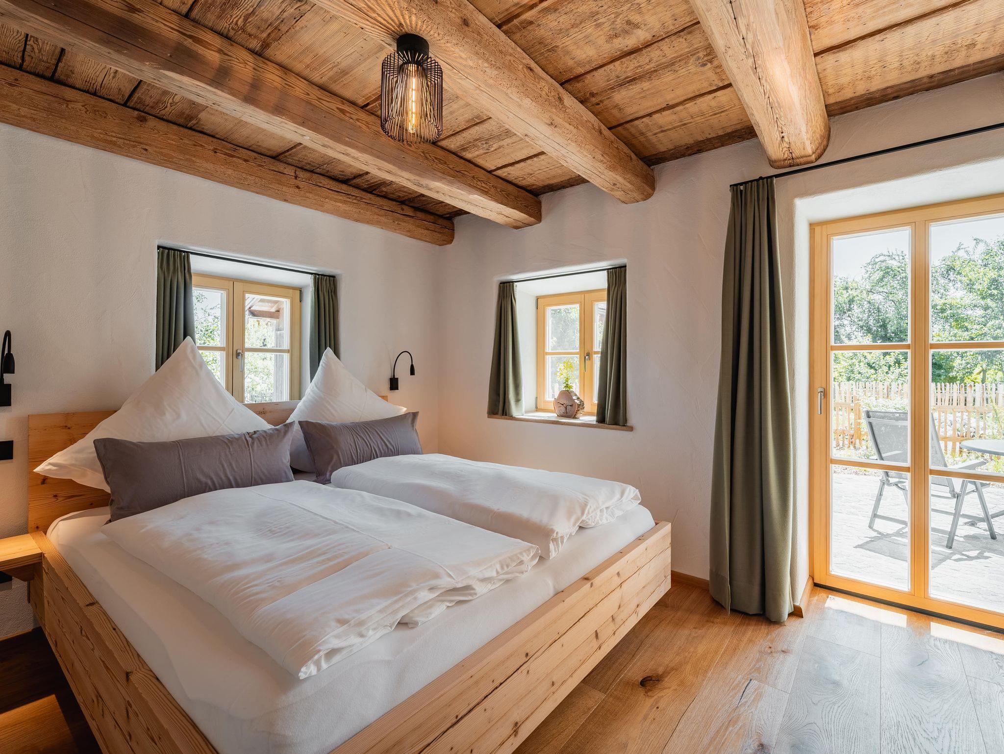 Unser Name verrät eigentlich schon alles. Wir sind ein sehr gemütlicher Platz zum Bleiben wollen. Zum Abschalten und Auftanken. Zum Zeit finden und Zeit nehmen. Fürs Leben, die Lieben, sich selbst. In malerischer Lage bei Traunstein, mit Blick auf die Chiemgauer Alpen und das berühmte Ettendorfer Kircherl, erwartet Dich unser neugebautes Ferienhaus mit vier individuellen Apartments. Gebaut, als wär’s unser Heim. Eingerichtet mit massiven Hölzern, wertigem Naturstein und warmen Stoffen. Ausgestattet mit allem, was Du für einen Urlaub im eigenen Takt brauchst. Balkon oder Terrasse gibt’s natürlich auch, mit freiem Blick aufs idyllische Kircherl. Haustiere sind nur in der Ferienwohnung Liesl gestattet.