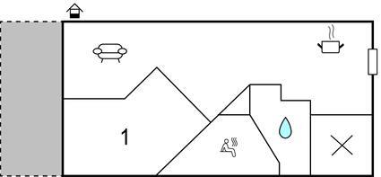 Badezimmer (nr. 1) - WC. Warmes und kaltes Wasser. Dusche