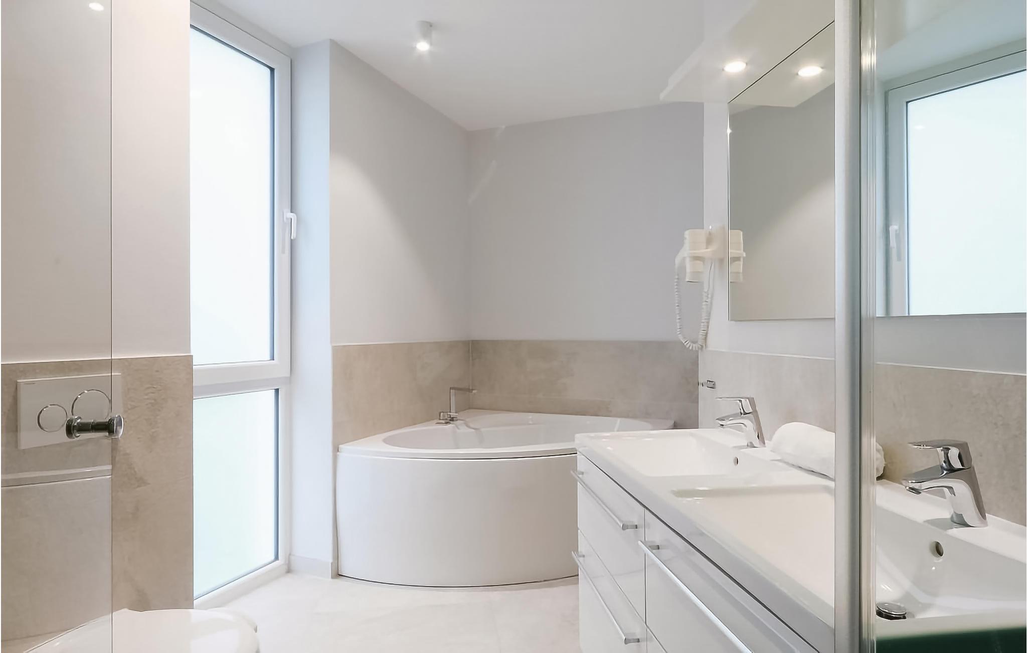 Die Wohnung ist stilvoll, hochwertig und modern eingerichtet. Ein besonderes Highlight ist das Bad, Ihr persönlicher kleiner Wellnessbereich mit Sauna, Whirlpool und Dampfbad mit integrierter Doppelregendusche. Das Wohlfühlprogramm setzt sich im Wohnbereich fort, denn die flackernden Flammen des Bioethanolkamins tauchen den Raum in ein besonders gemütliches Licht. Das Sofa lässt sich mit wenigen Handgriffen in zwei bequeme Schlafmöglichkeiten umwandeln.