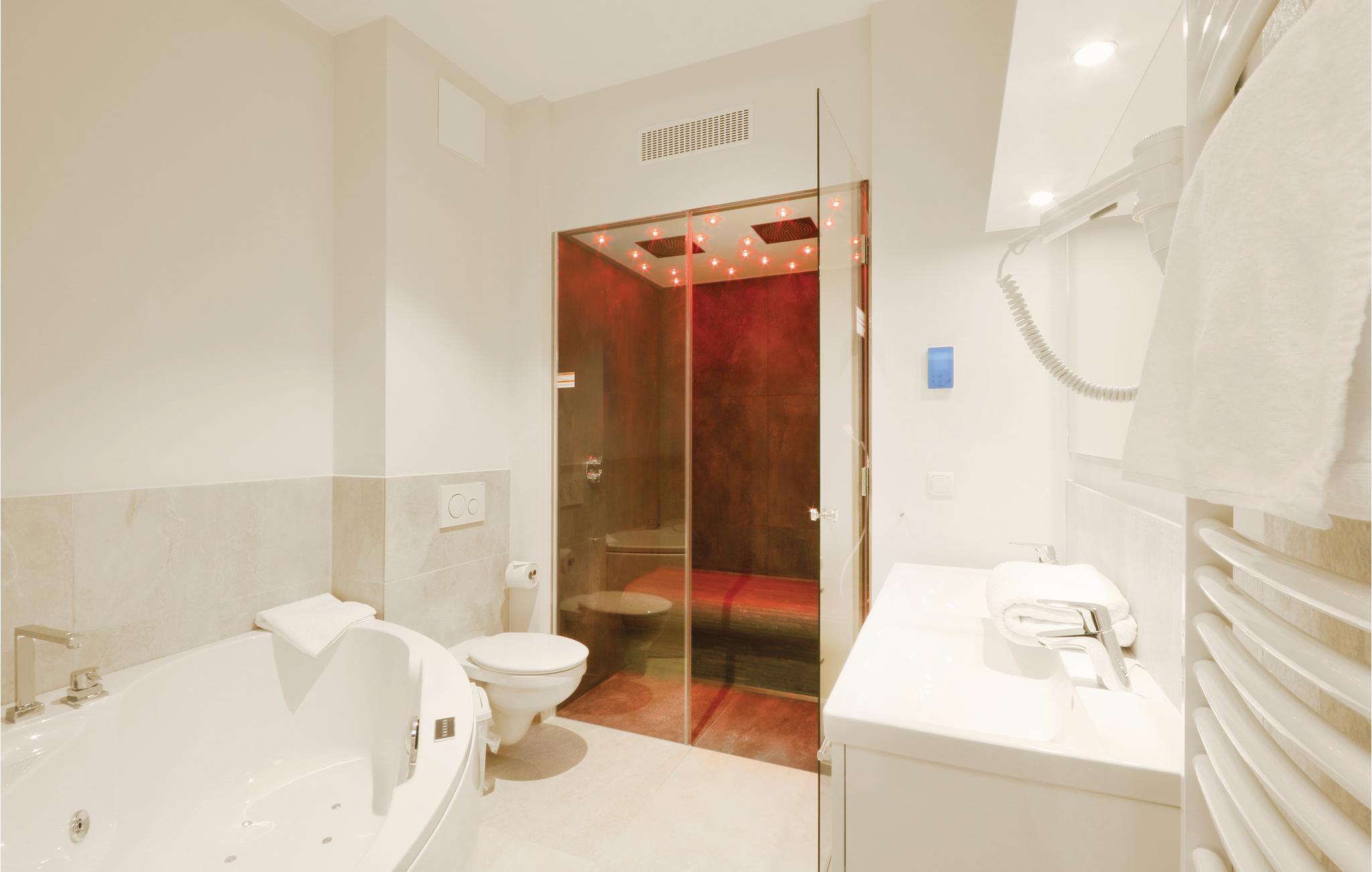 Das Penthouse ist stilvoll, hochwertig und modern eingerichtet. Ein besonderes Highlight ist das Bad, Ihr persönlicher kleiner Wellnessbereich mit Sauna, Whirlpool und Dampfbad mit integrierter Doppelregendusche. Dieses Badezimmer ist durch das zweite Schlafzimmer zu erreichen. Das Wohlfühlprogramm setzt sich im Wohnbereich fort, denn die flackernden Flammen des Kaminofens tauchen den Raum in ein besonders gemütliches Licht. Das Sofa lässt sich mit wenigen Handgriffen in zwei bequeme Schlafmöglichkeiten umwandeln.