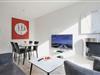 Das Badezimmer präsentiert sich als Ihr privater Wellness-Bereich. Hier können Sie es sich in der Infrarotsauna gemütlich machen oder im Dampfbad mit Regendusche entspannen. Die Ferienwohnung verfügt außerdem über ein modernes Entertainmentsystem mit Blu-Ray-Player, zwei Flatscreen-TV und einer Musikanlage mit MP3-Anschluss.